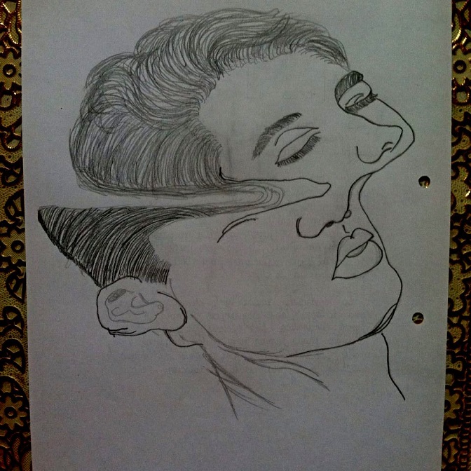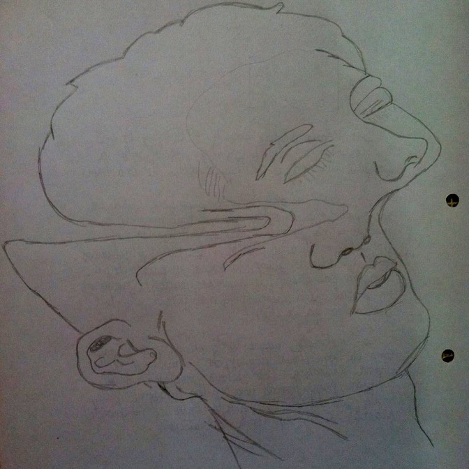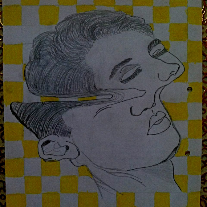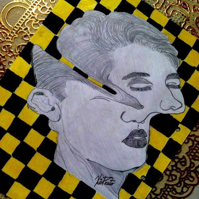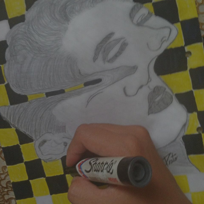 II. Luego de realizar el Sketch decidí tomar una regla para hacer cuadros detrás del rostro, así comencé a darle vida al fondo, como pueden notar en mis dibujos anteriores me gusta jugar con cuadros o diferentes líneas, diría que eso es lo que diferencia mis dibujos de los demás.