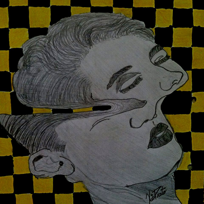 III. Los cuadros del fondo tienen vida gracias al color amarillo que apliqué, también el marcador negro, lo que le da un toque muy retro que combina perfectamente con el dibujo. En la siguiente imagen pueden observar los últimos retoque y el dibujo terminado.