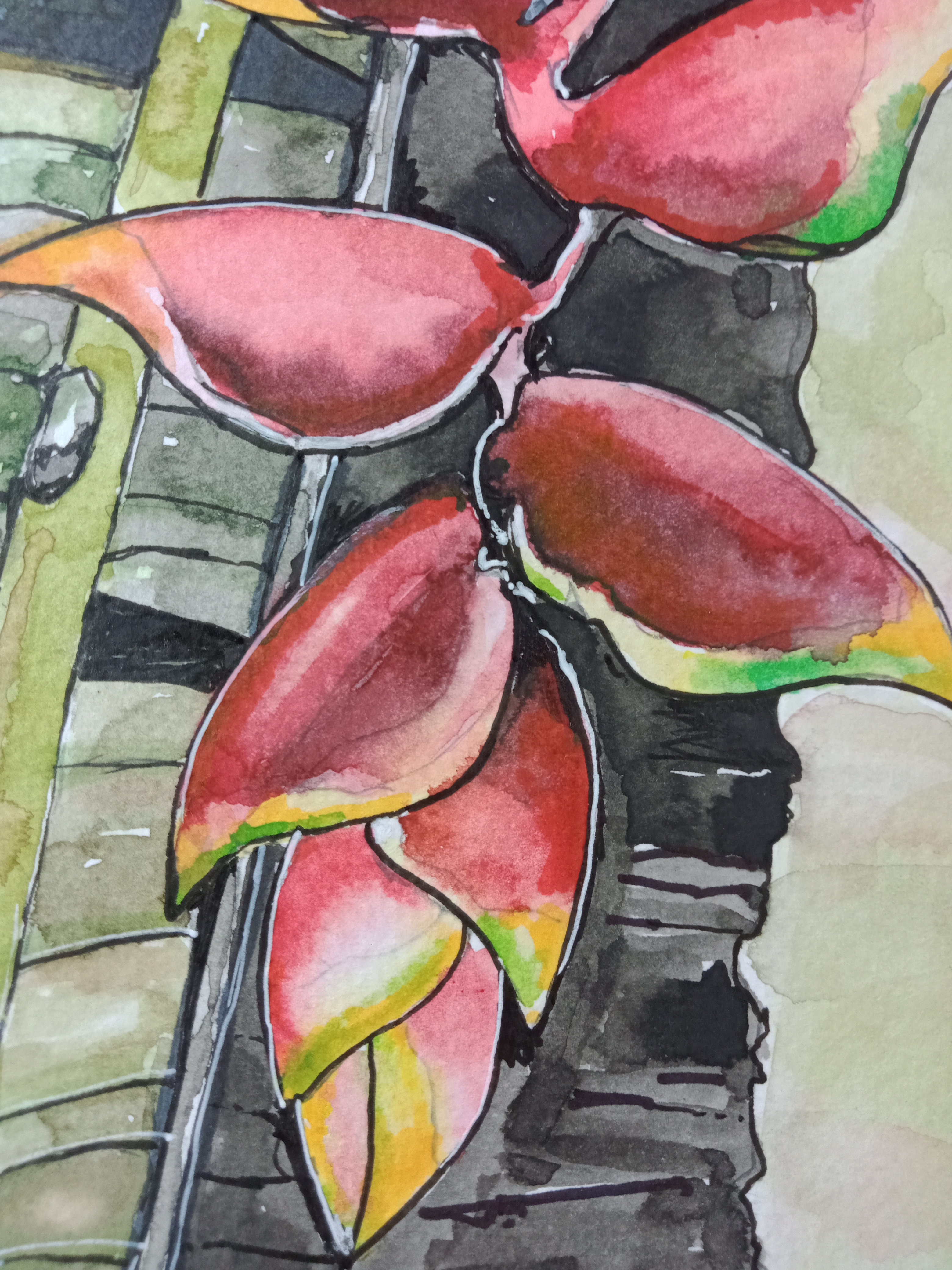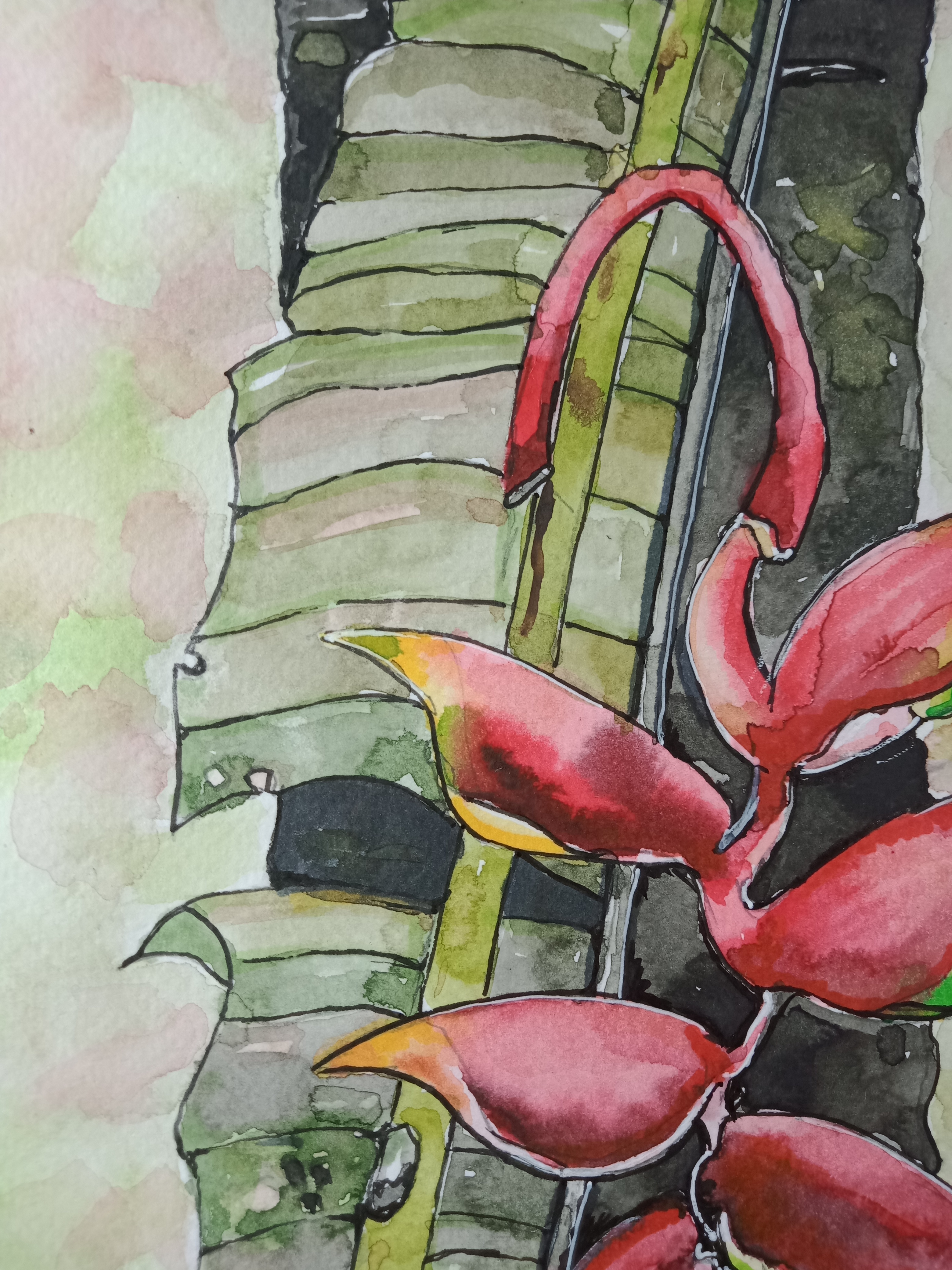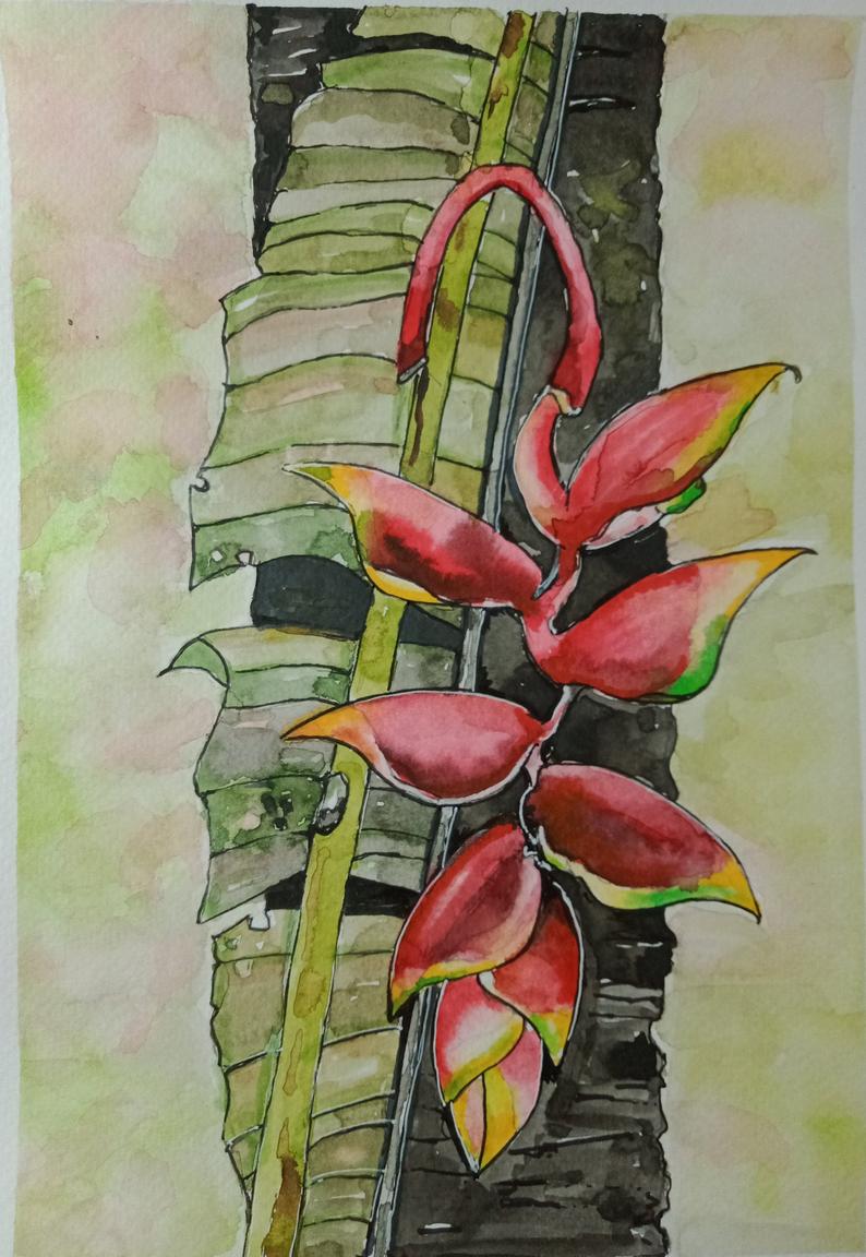 Watercolor Art - Heliconia Rostrata.