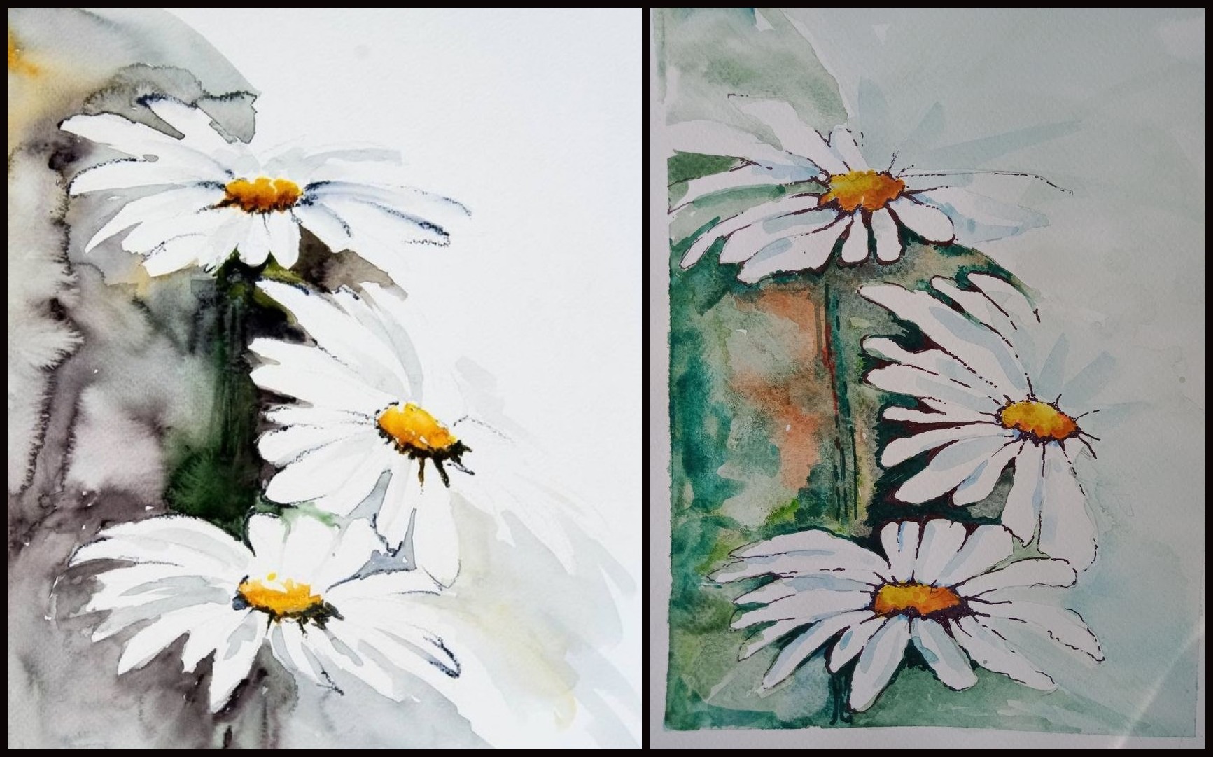 Source: Yuriy Kraft https://www.saatchiart.com/art/Painting-Daisies-original-watercolour-painting-28x38-cm/819257/3078518//view