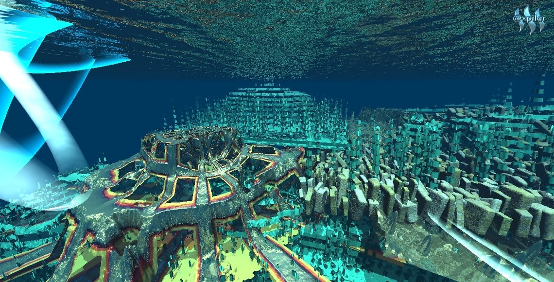 Surprised he noticed that he could breathe, and that he was in a marine city, before the beautiful shopping center called STEEMIT.