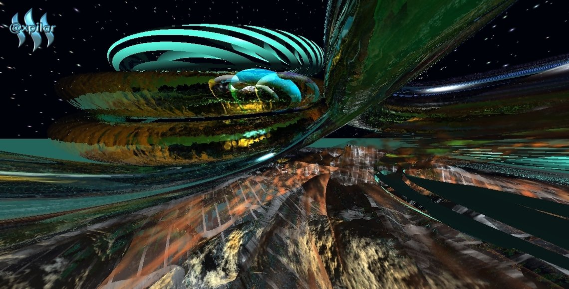 A beautiful futuristic world... maybe in the future we'll be building structures so close to space. Nice imagination, @xpilar.