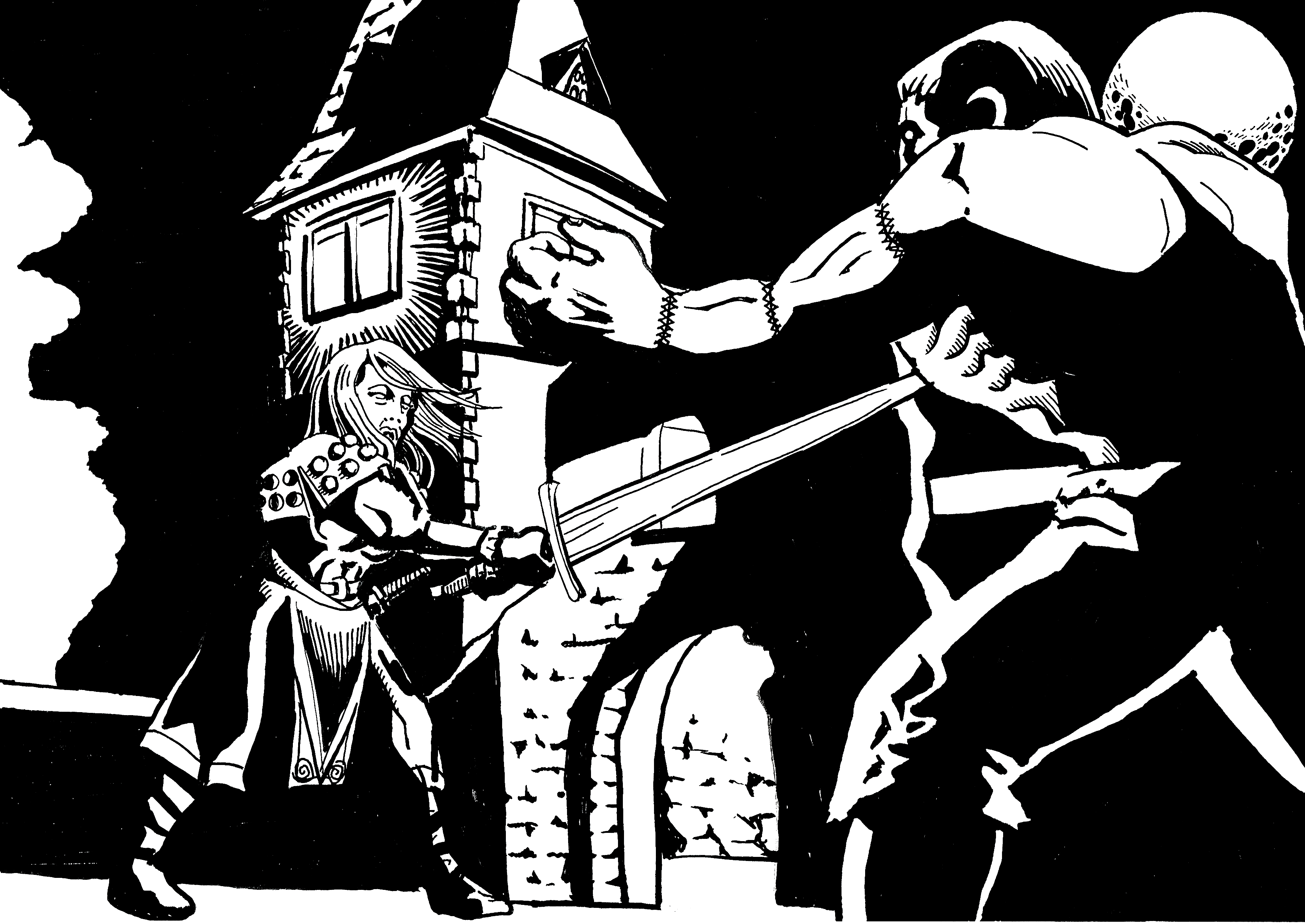 Here's another experiment in line, form and contrast that I did yesterday. This was pretty fun and I like the results. Sheyla is a character that I've had rolling around in my head for the past few months. She's a lycanthrope that is on the hunt for the man that destroyed her pack/family. I'm toying with the idea of getting this down into some sort of story form and perhaps a comic of some form or description. Who knows? She will definitely be making an appearance in my Astonishing Swordsmen and Sorcerers of Hyperborea writing. Enjoy and hapy gaming!