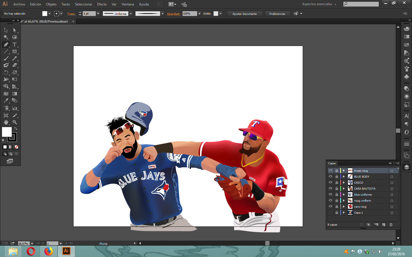 HOLA GENTE!! estuve dias ausente por motivos de trabajo pero aqui estoy de vuelta, hoy les compartiré una ilustración que hice sobre la pelea que tuvieron José Bautista y Rougned Odor, una rivalidad que se creó por varias razones.