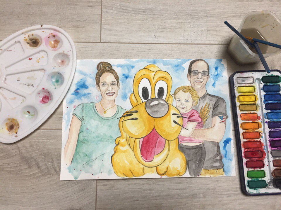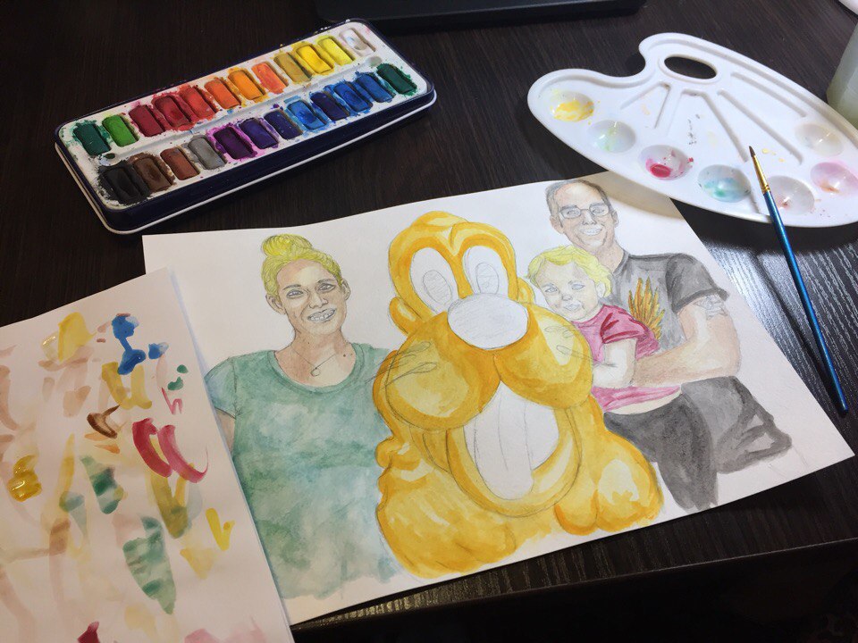 Hello everybody! I'm glad to meet you again, dear Steemit friends:) Today I drew three heroes at once. It's a very nice family! Guys, just see what a lovely family. This little princess makes me smile. Madeleine - little angel.