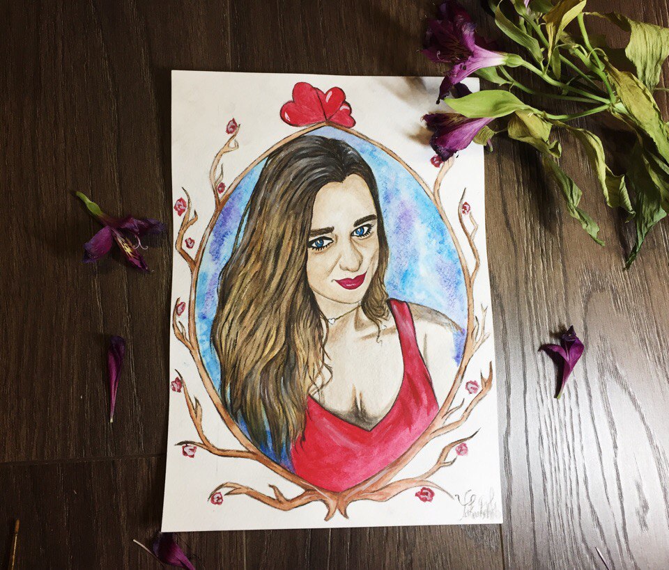 After almost 11 hours the portrait is ready. I could draw it faster, but I tried, and I wanted to paint this girl as beautiful as possible.