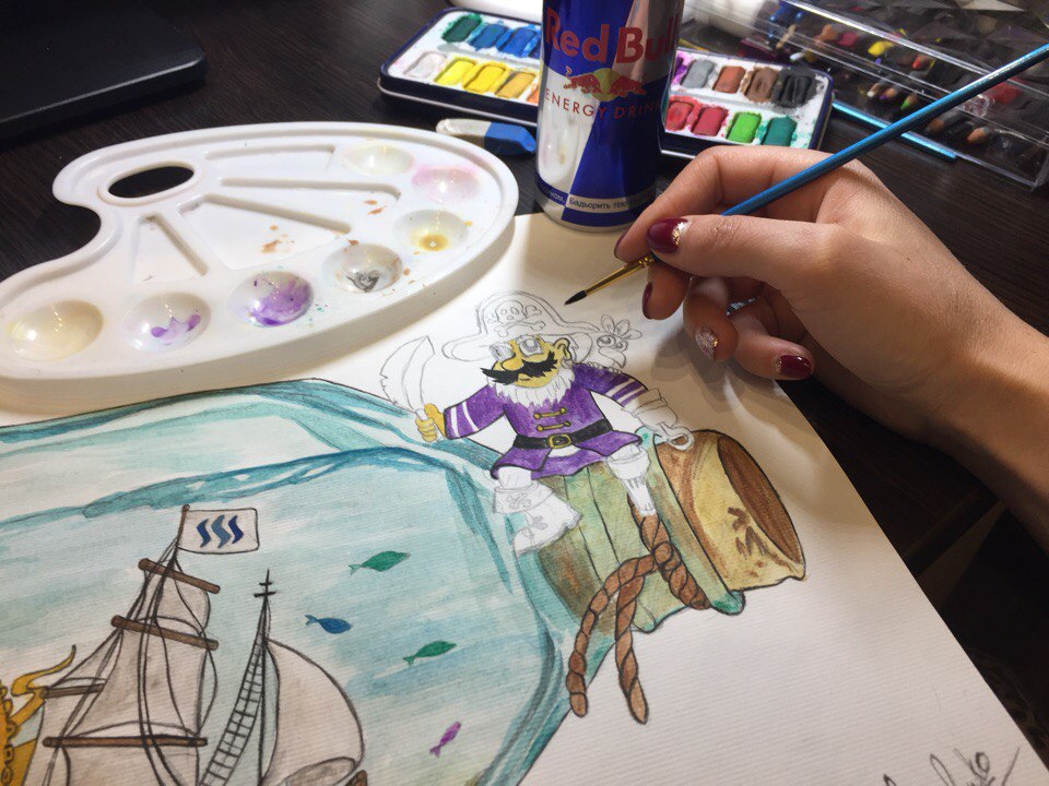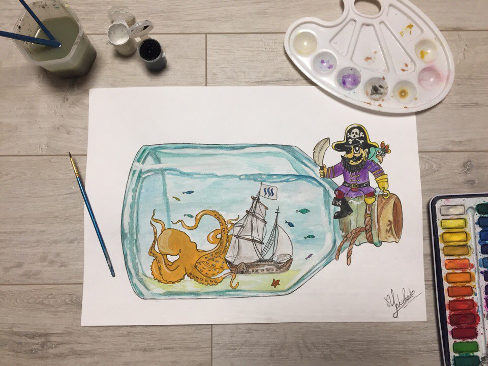 New watercolor art - good guy @drakos. Jolly Pirate🔱 always friendly.