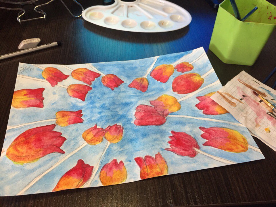 Today I want to share with you a spring drawing. I drew tulips.