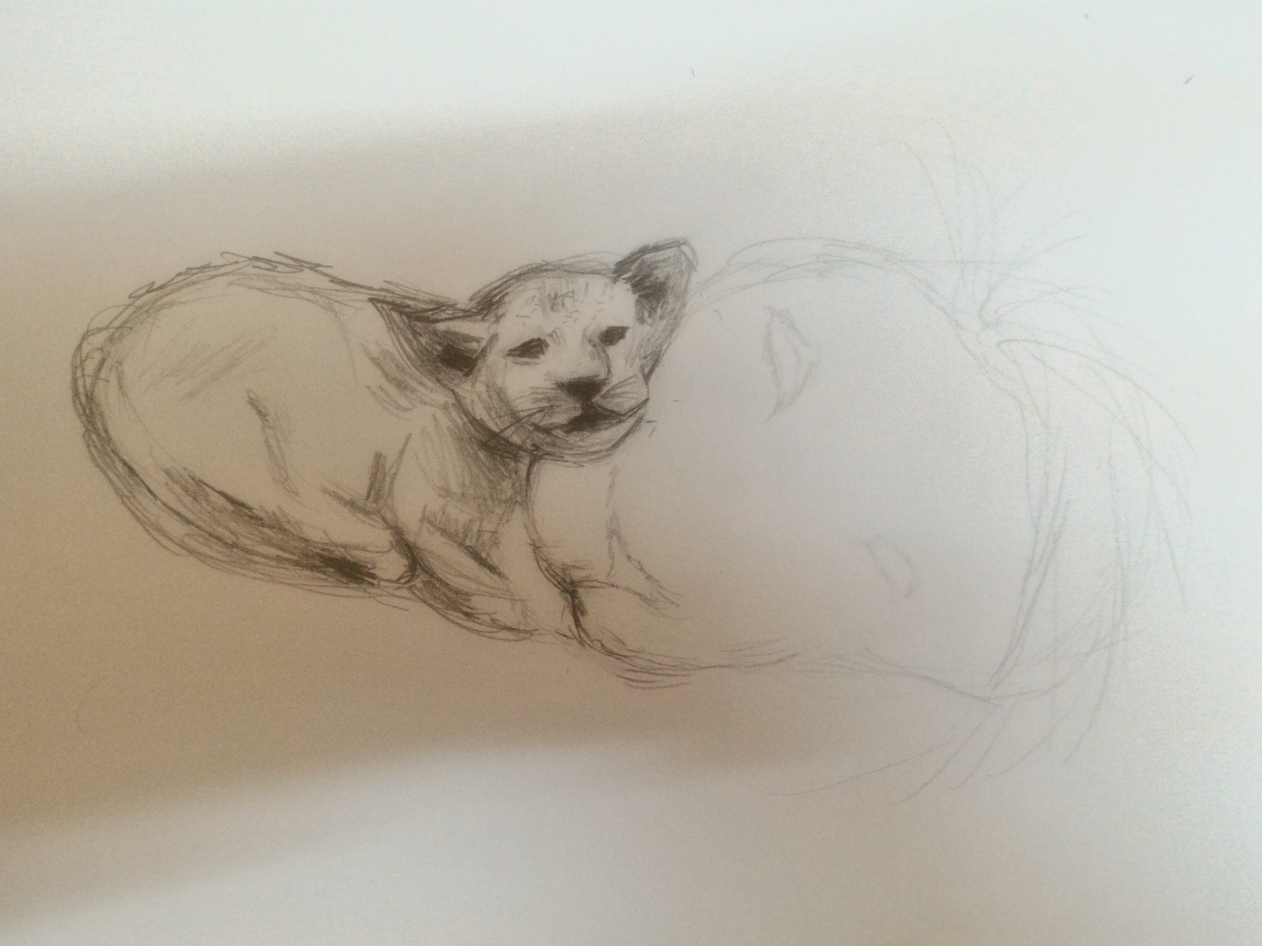 I started my drawing with a mechanical pencil with a 2B lead to draw the outline of the lion cub. A cub is smaller than an adult lion and therefore I chose to draw it first. It is easier to add details later on than to start off the artwork with details.