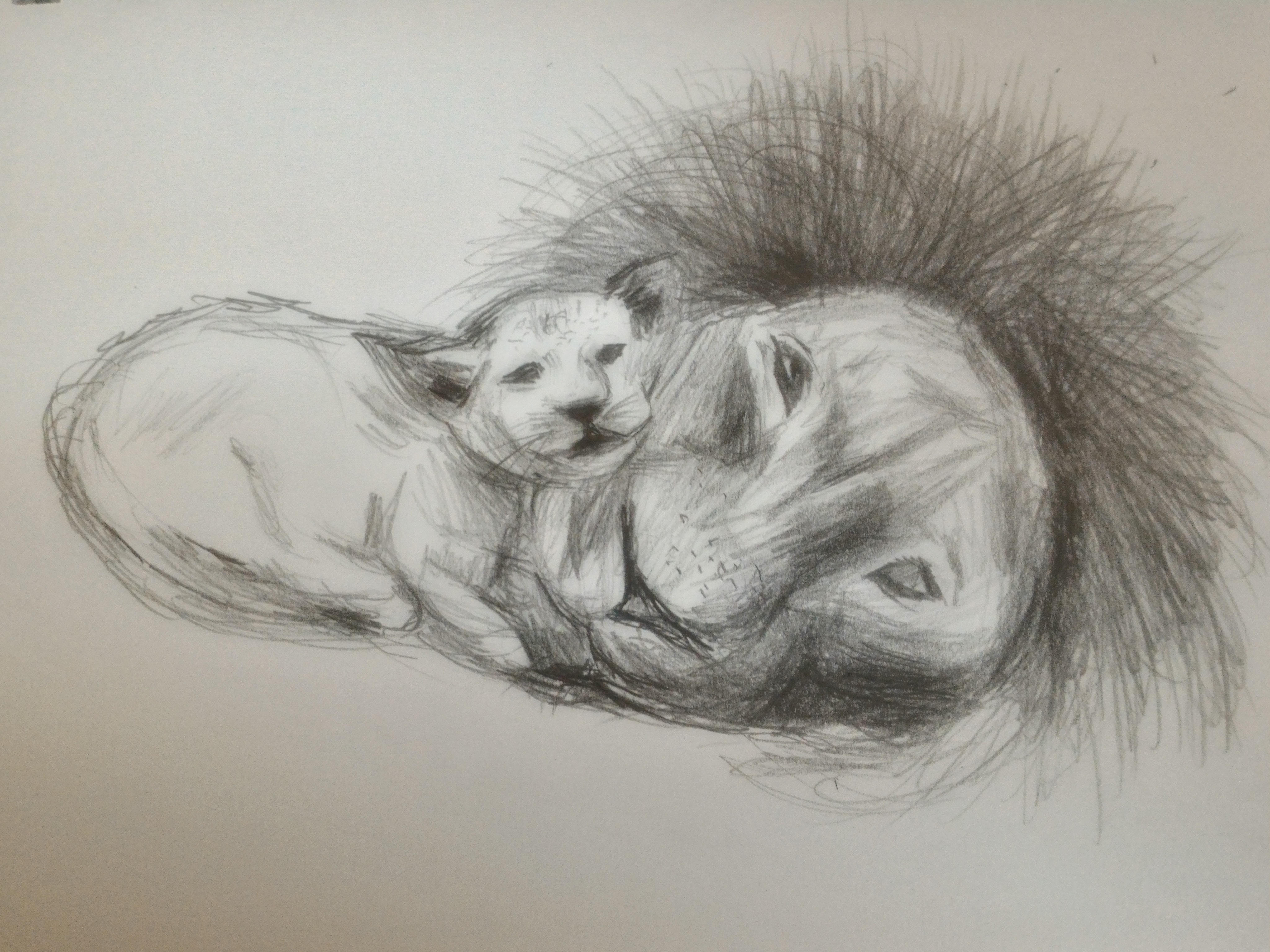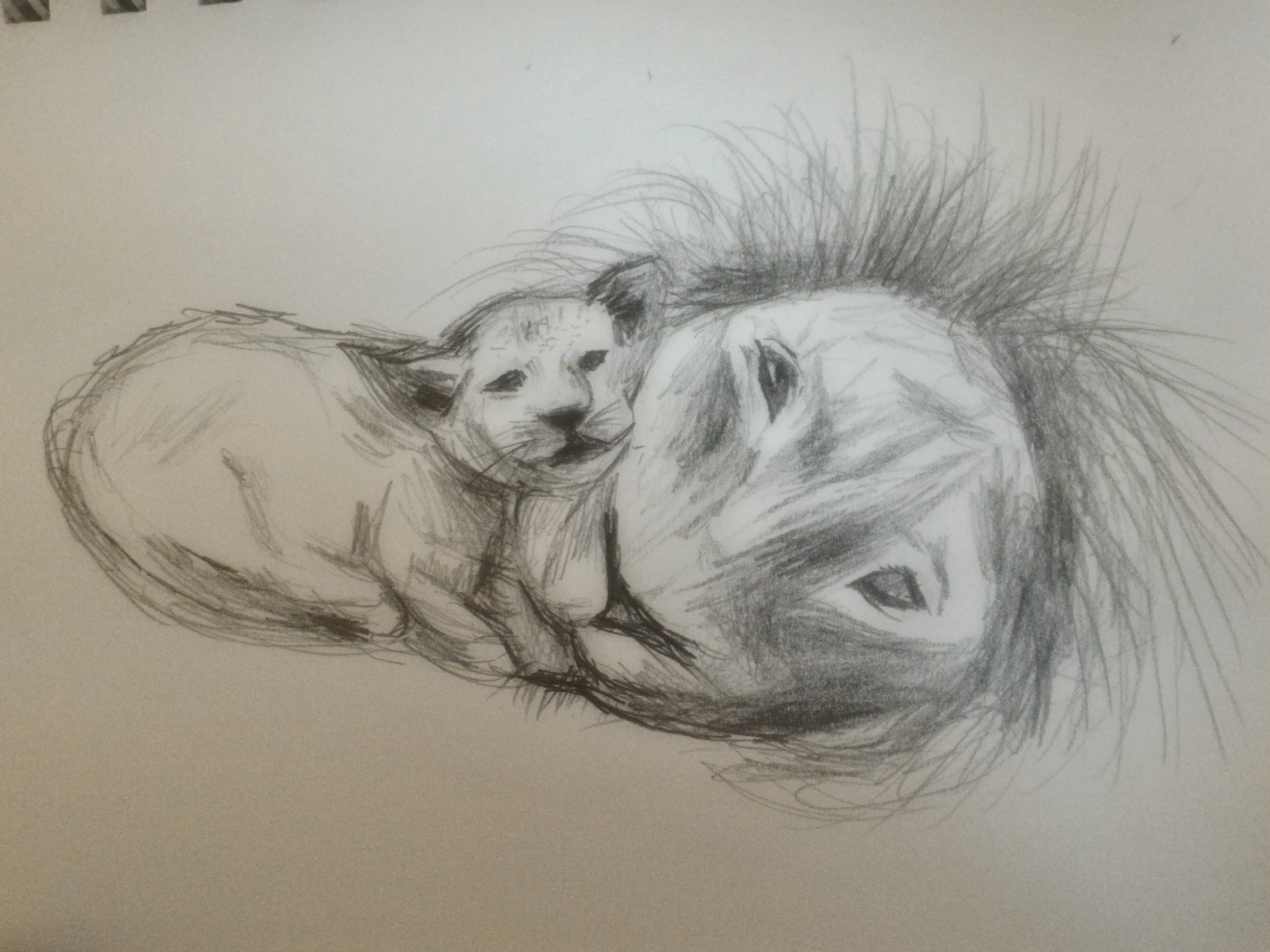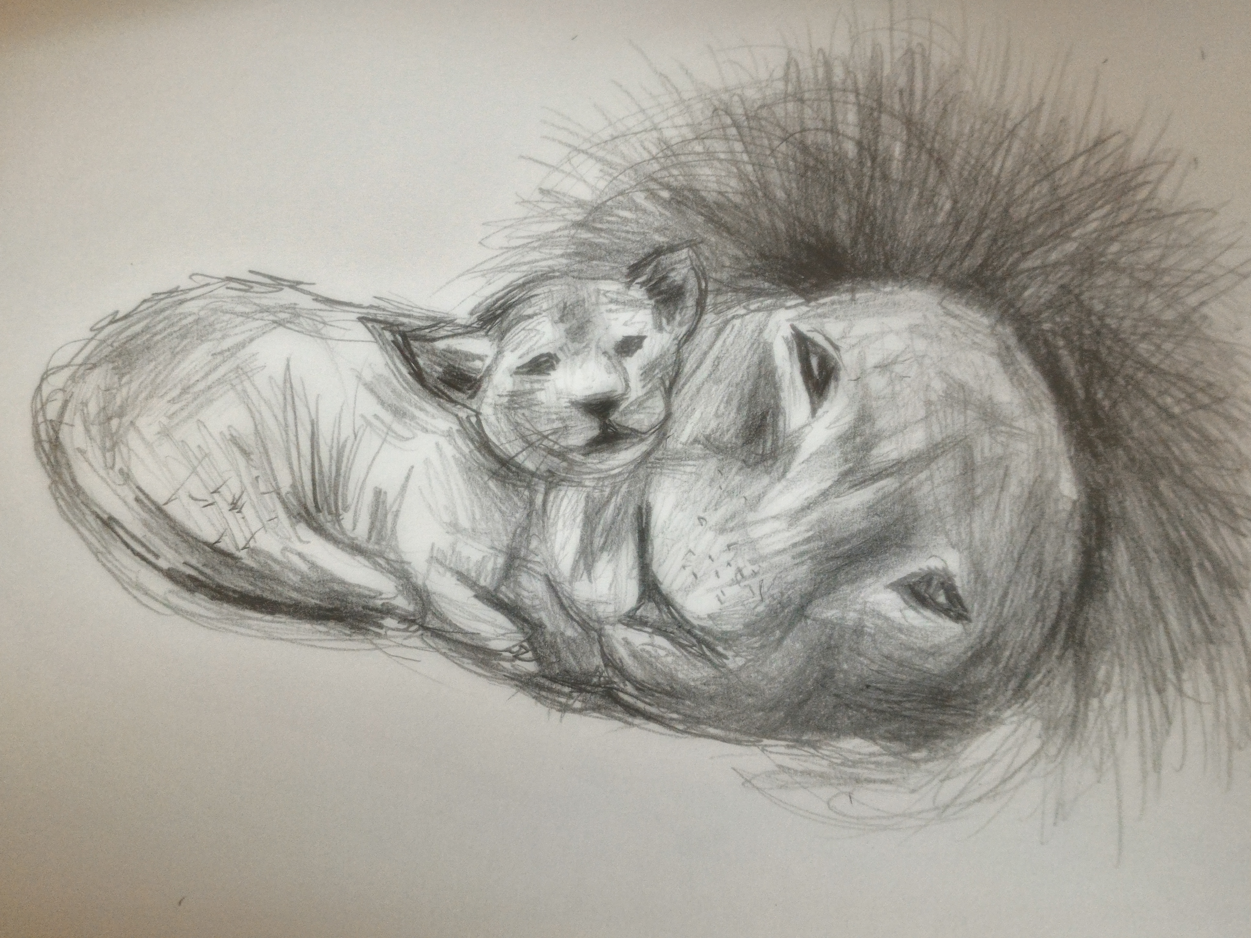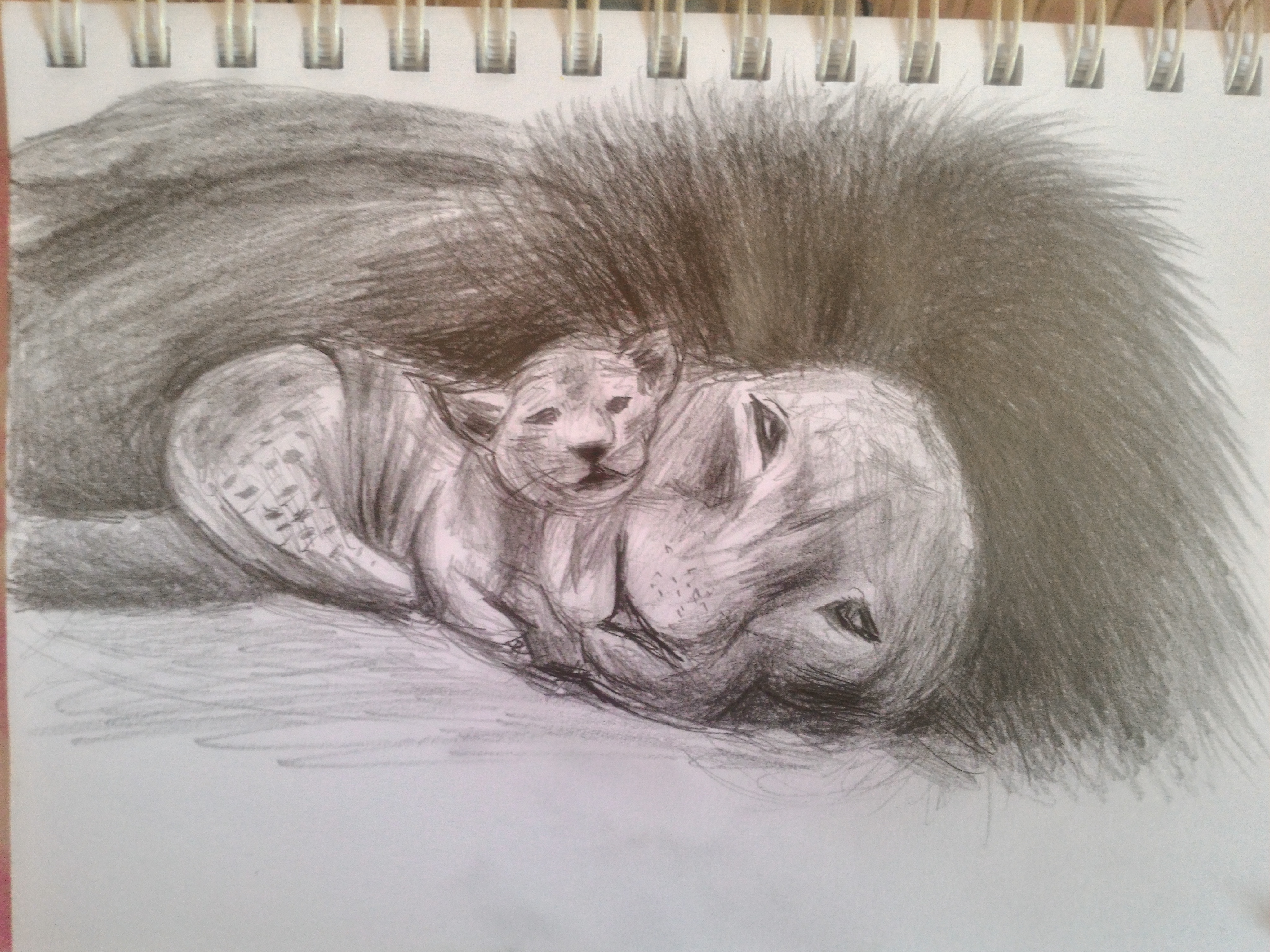 I switched to a normal 2B pencil to add more mane on the adult lion. It was softer than the mechanical pencil and I was able to build the mane up better.