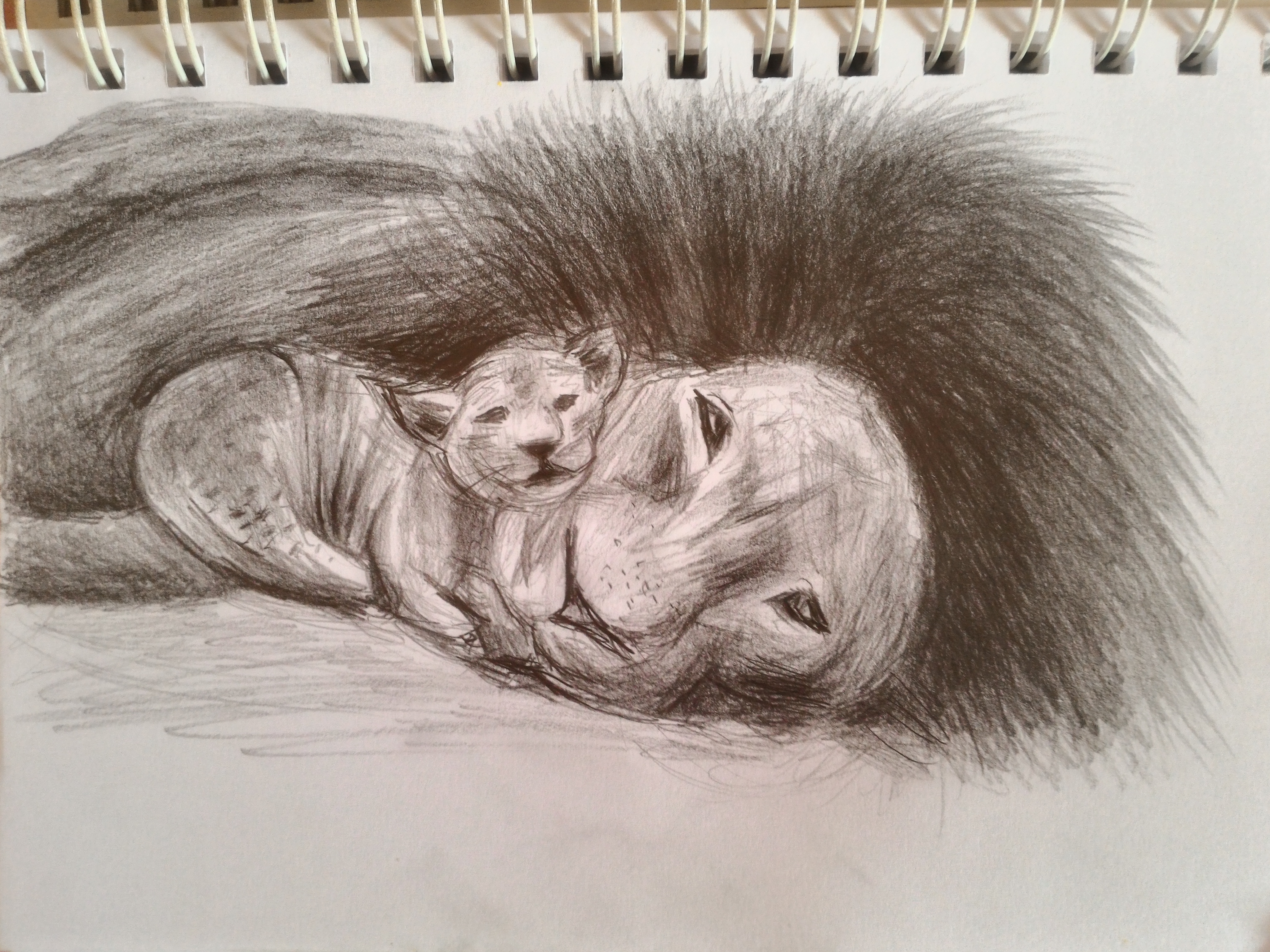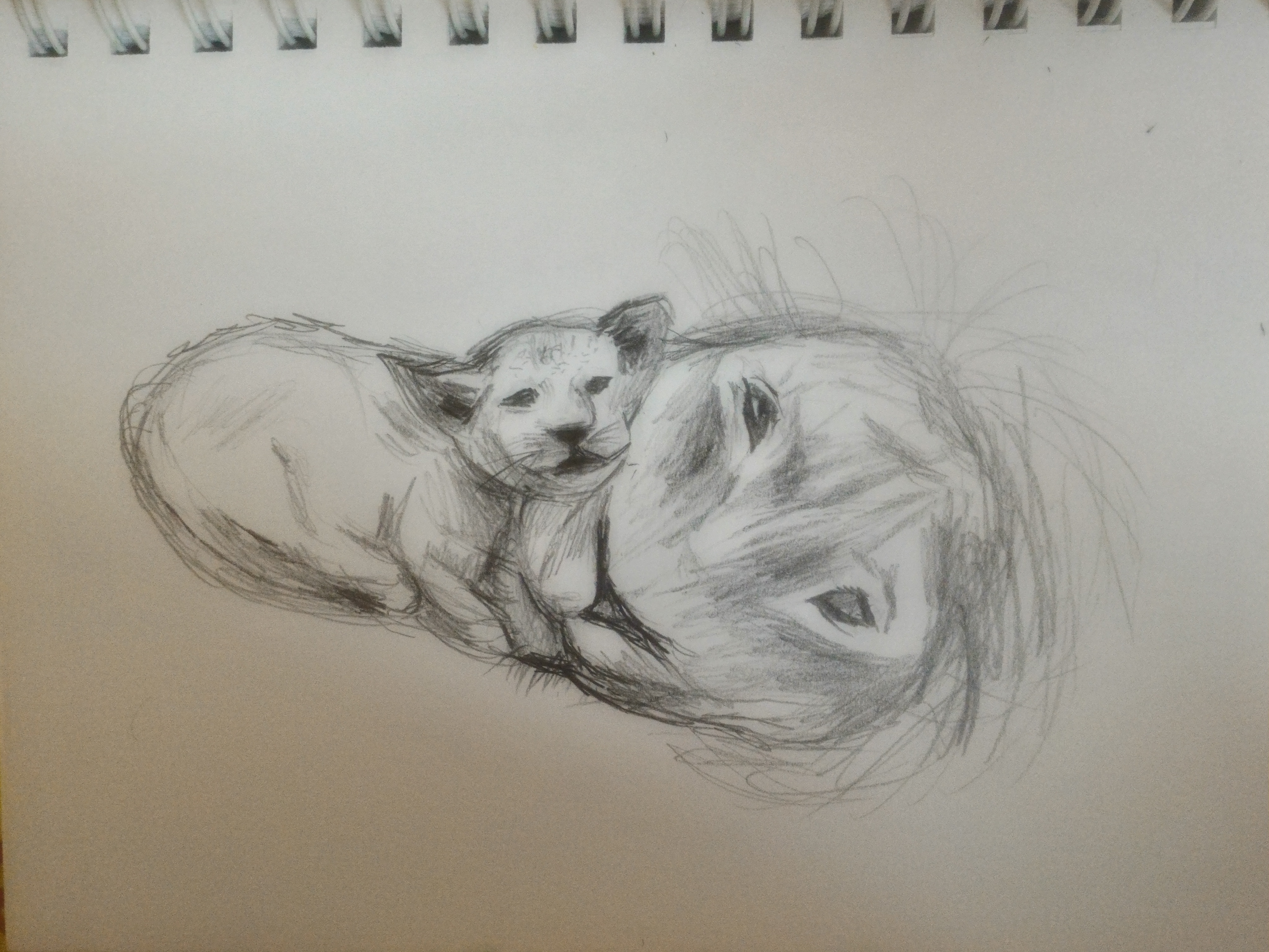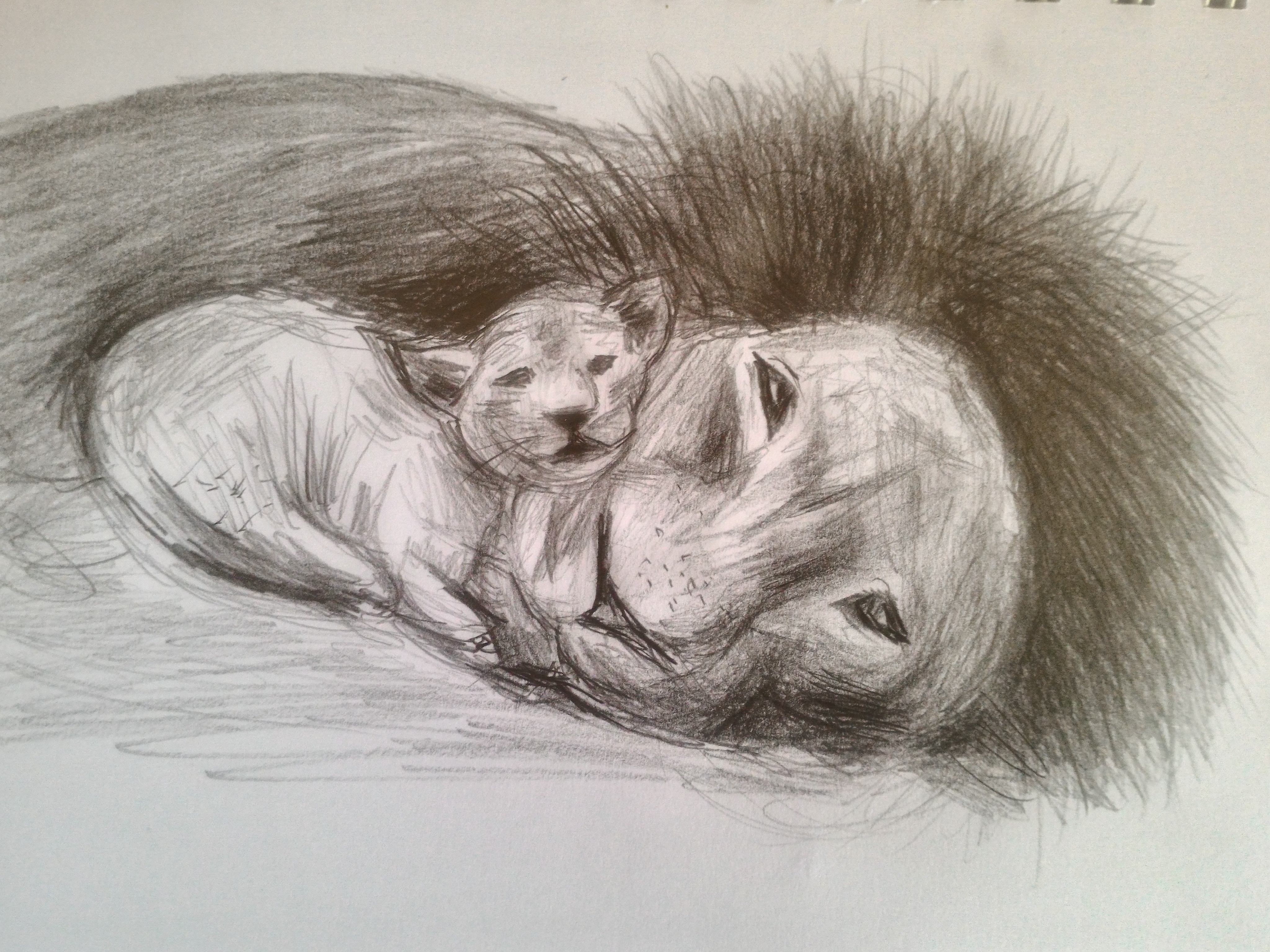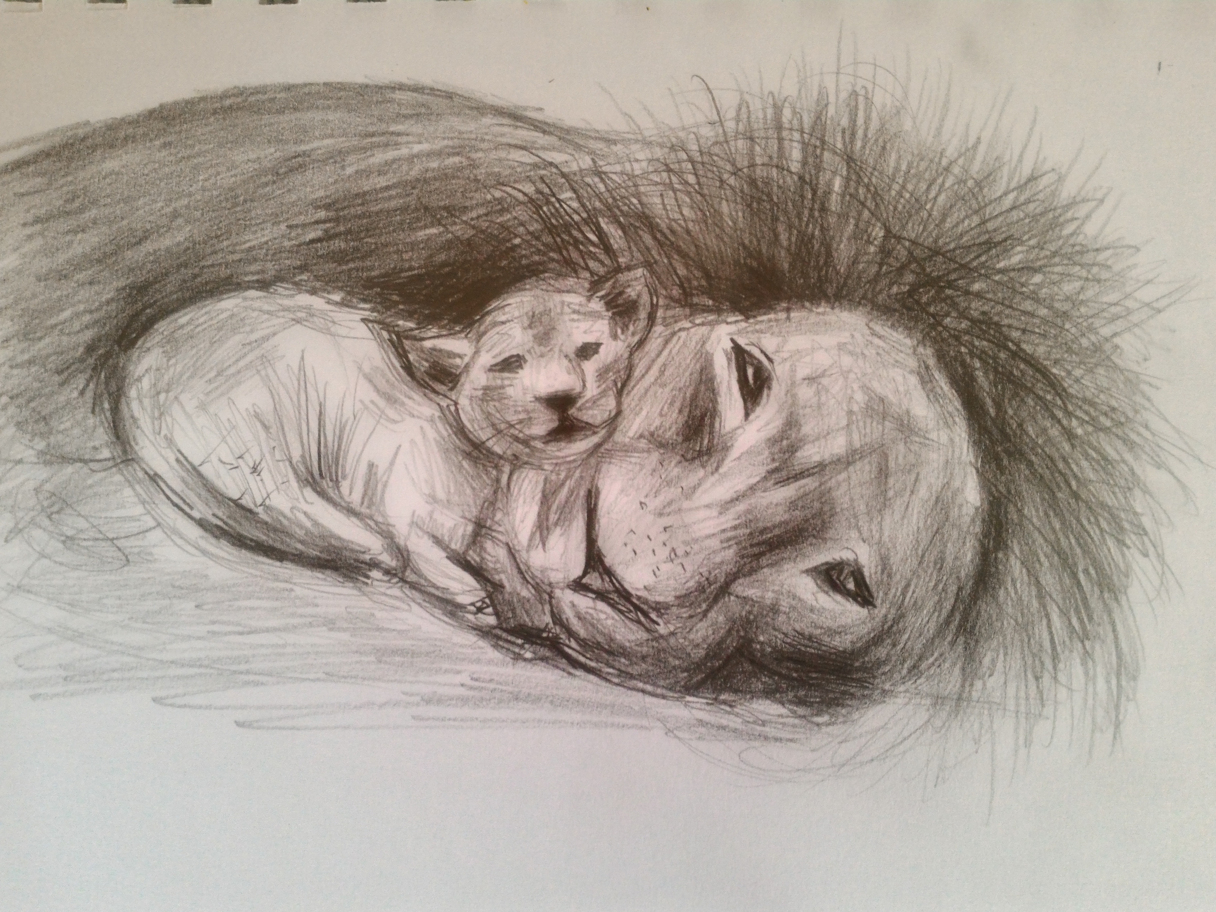 I switched to a normal 2B pencil to add more mane on the adult lion. It was softer than the mechanical pencil and I was able to build the mane up better.