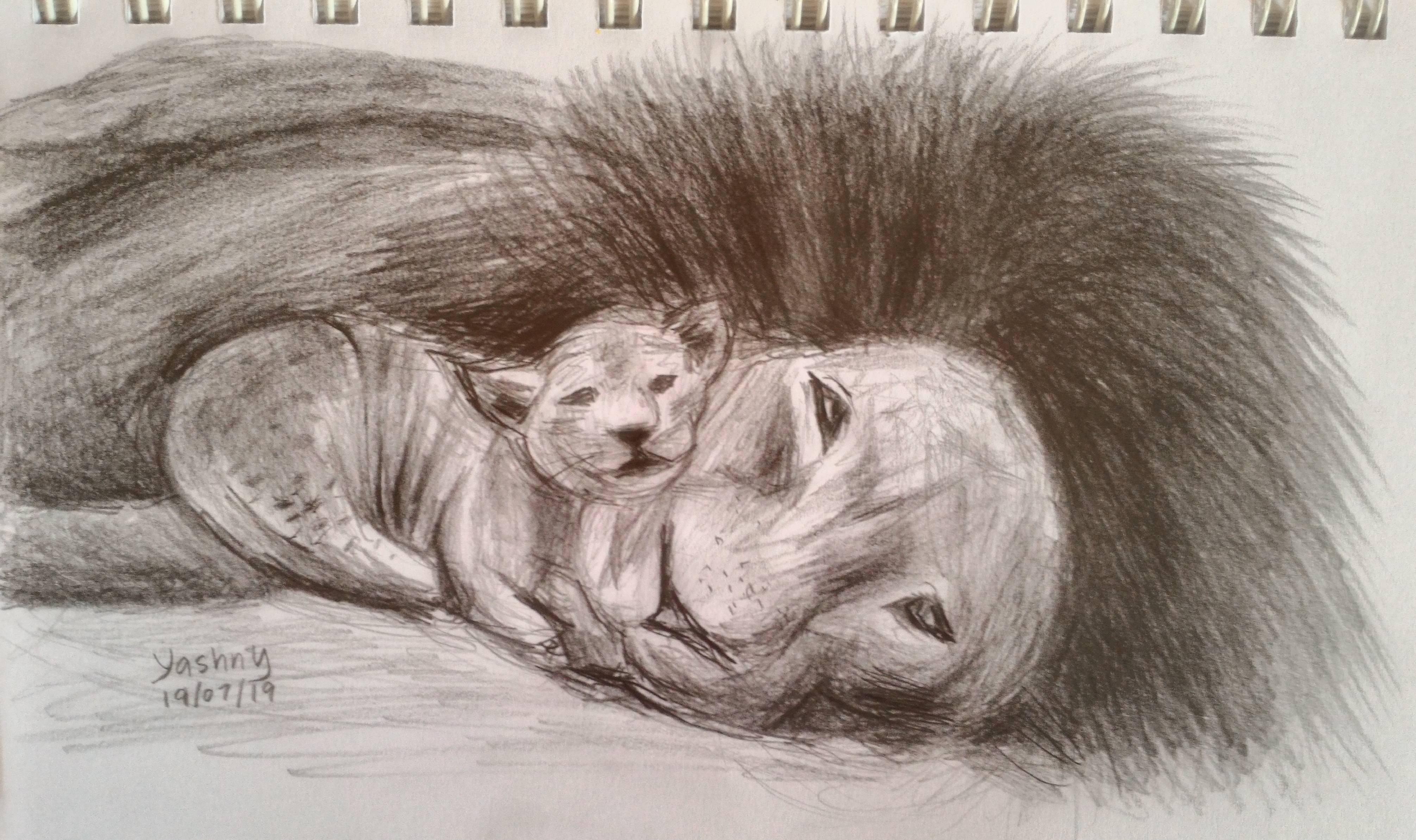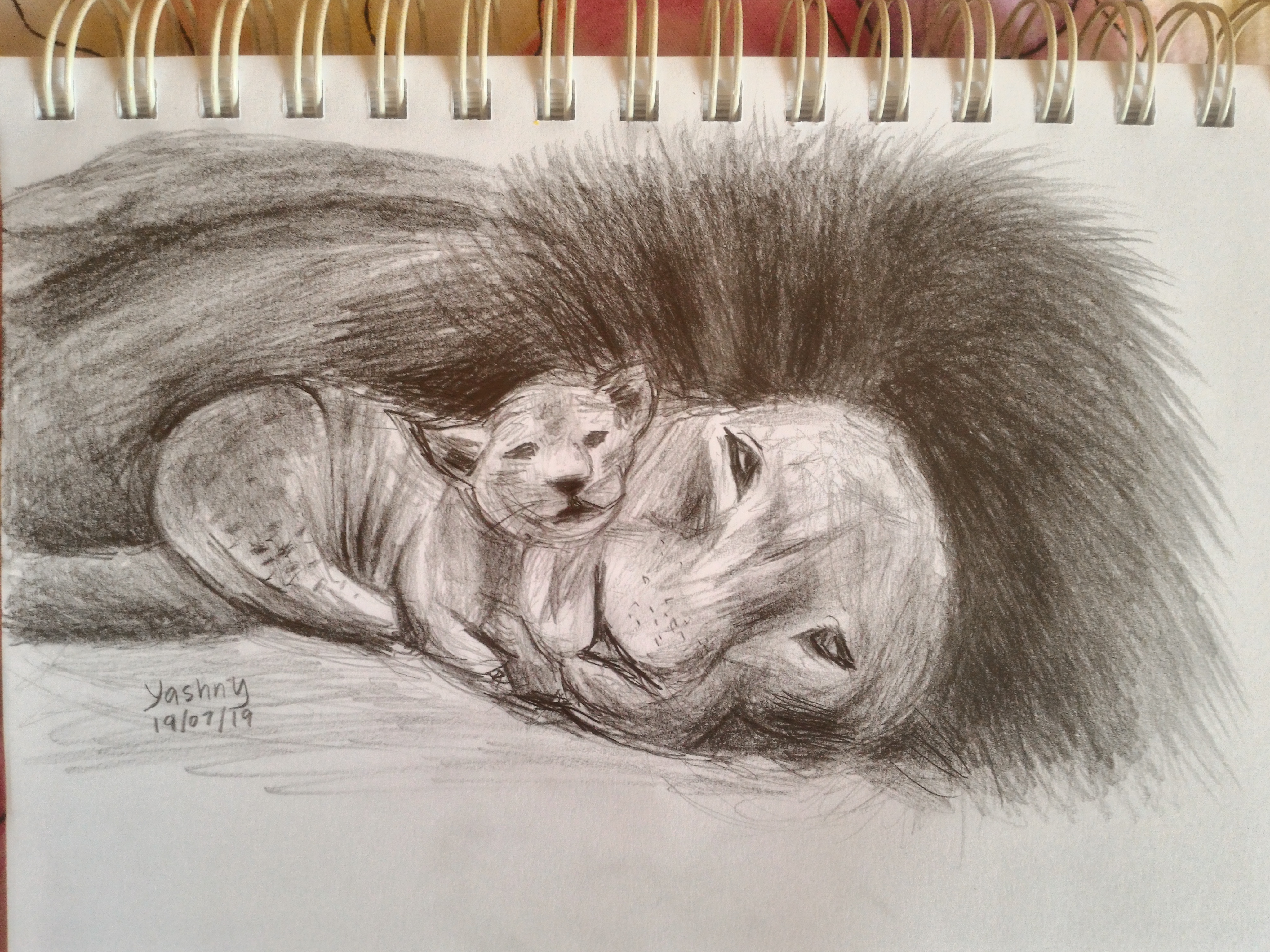 Hello dear Steemians! Today I would like to share the drawing process of a lion cub cuddling with his daddy. I named them Simba and Mufasa because they are the characters of my favourite childhood movie which is The Lion King. I got "The Lion King Fever" as the new movie has been out. So, I decided to make a drawing of them today =)