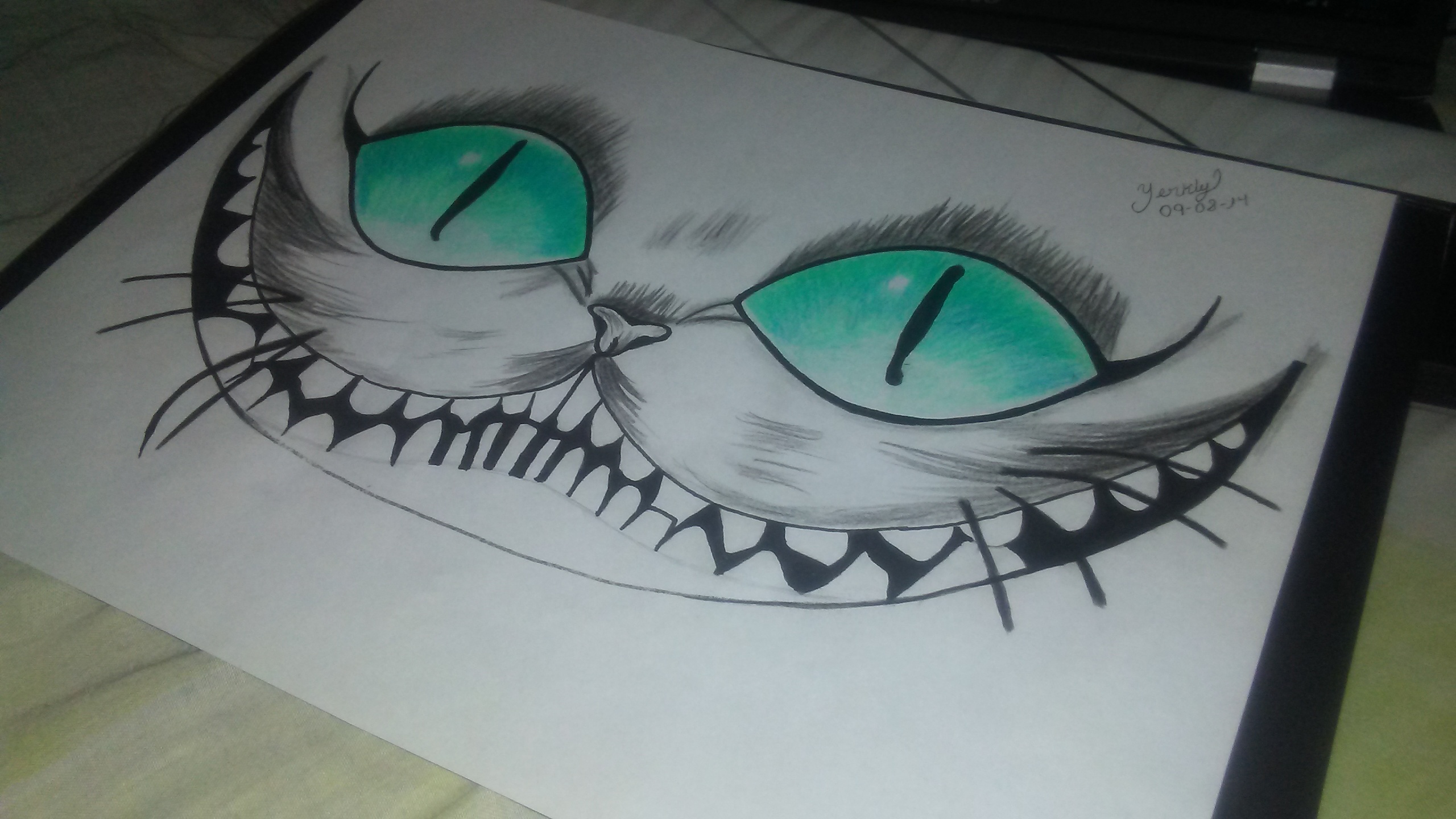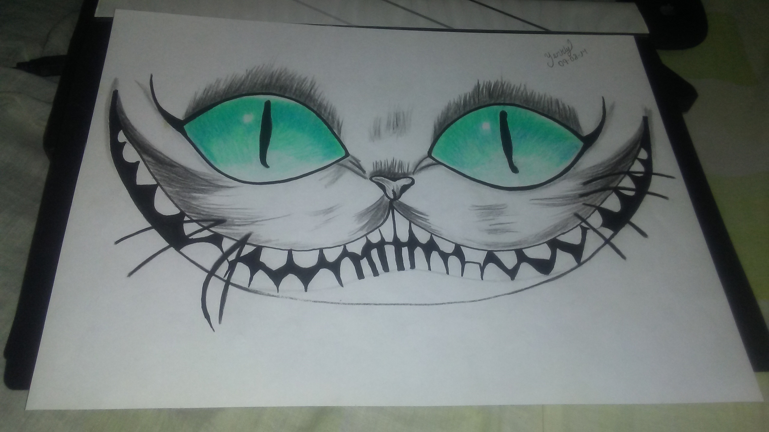 I love the cheshire cat and you captured his grin really nicely here :) Good drawing !