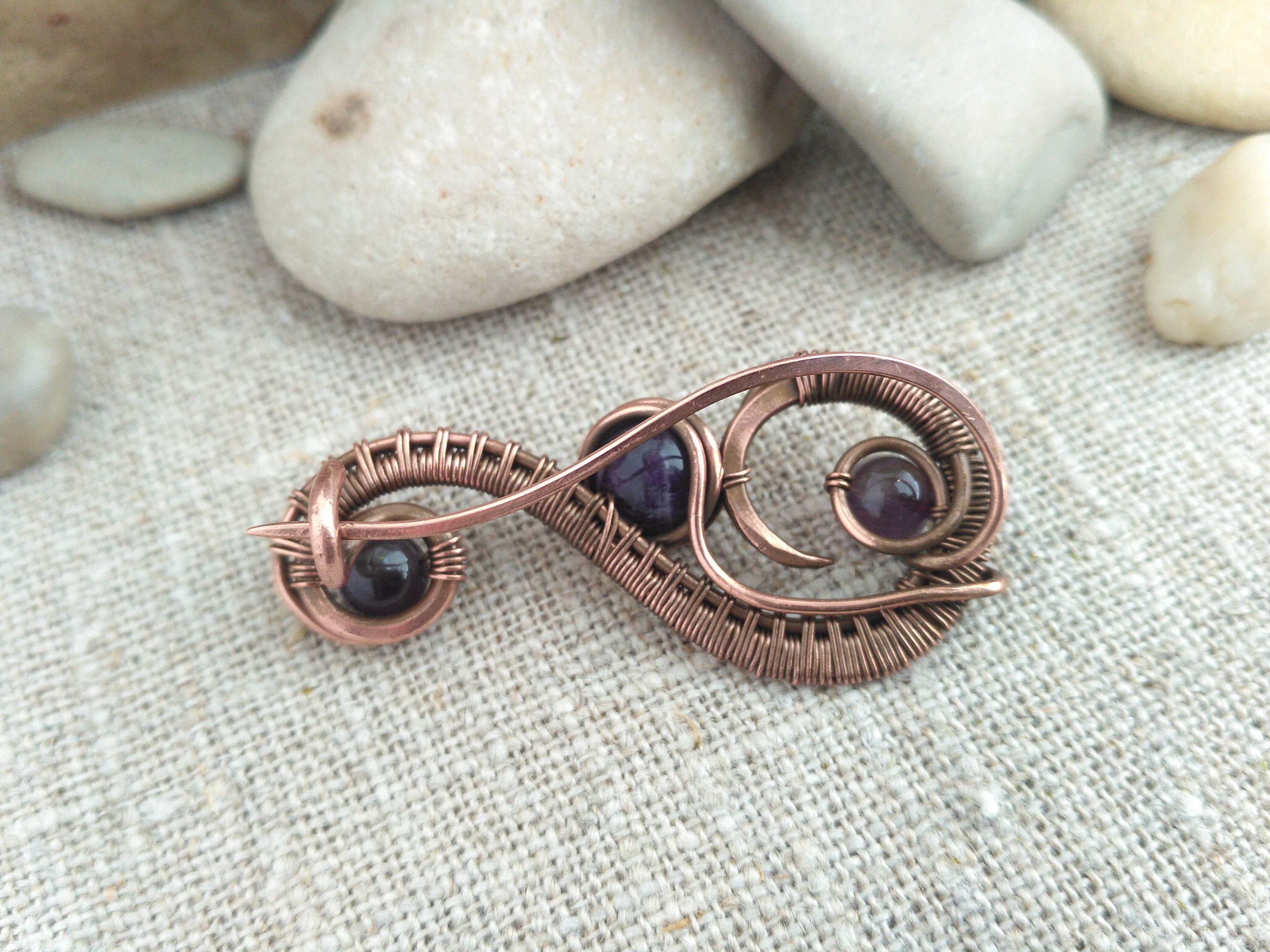 Брошь с аметистом в технике Wire Wrap