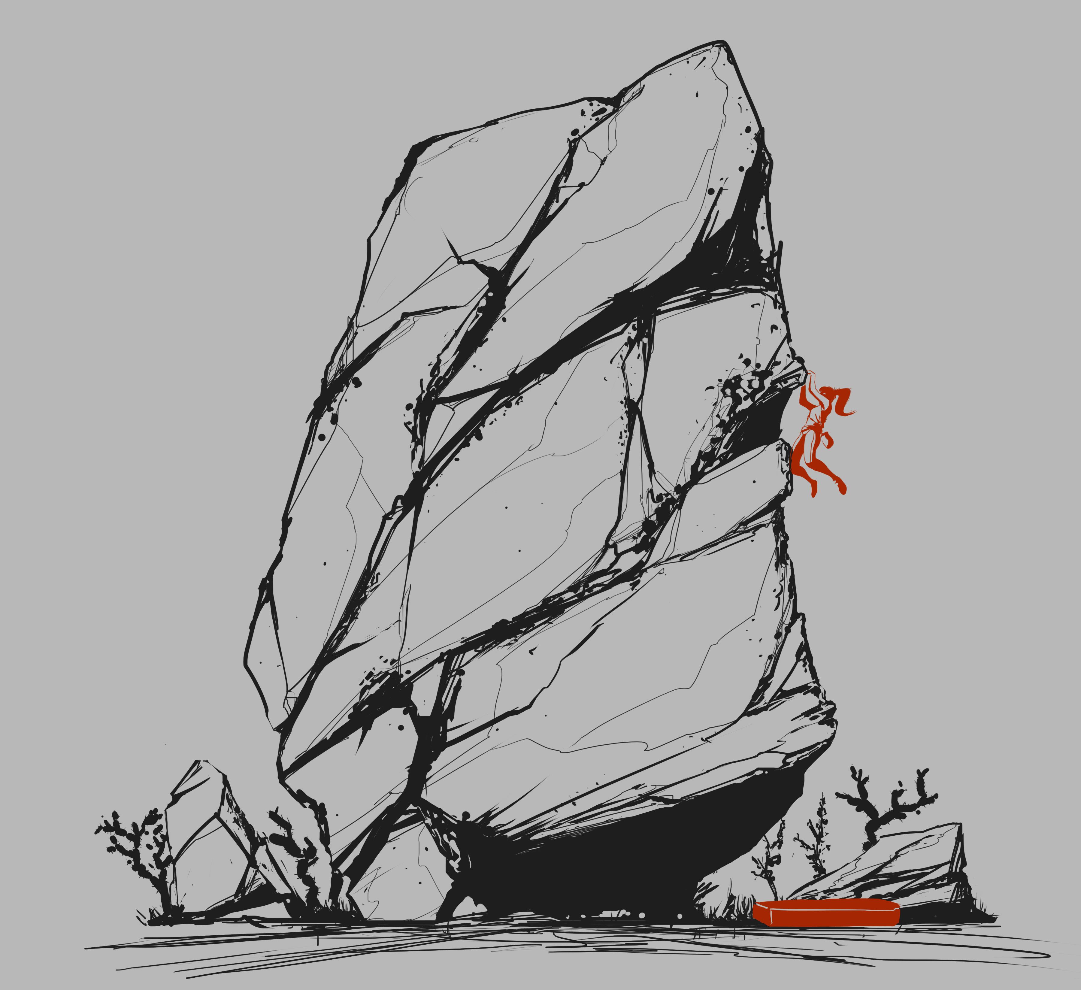 I've been working lately in various t-shirt designs for a friend who is an avid climber and also do bouldering. So is obvious that there should be rocks and boulders in the designs. I finished this one a couple of days ago: