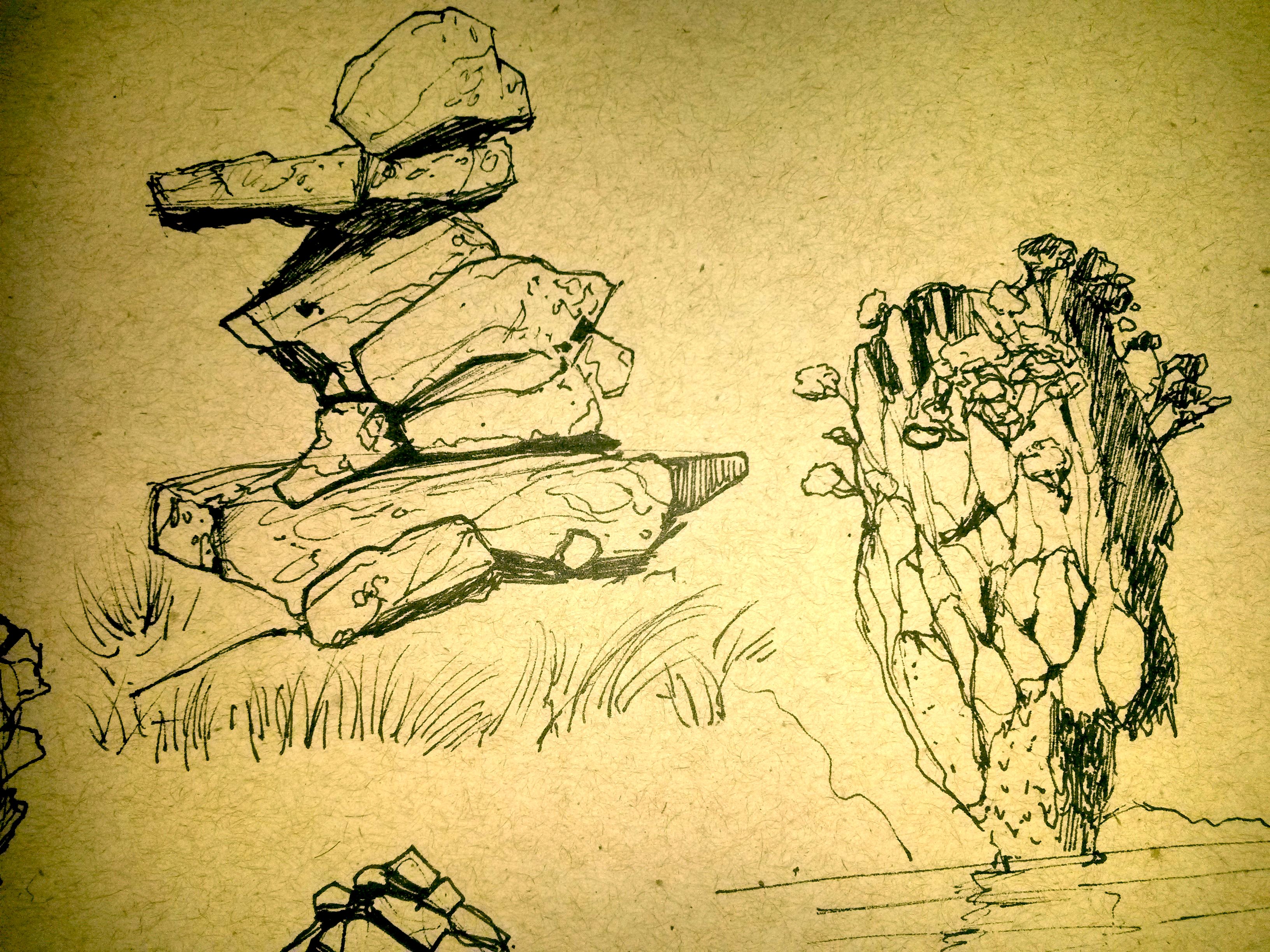 Rocks have certain qualities that make them fun and easy to draw and sketch, which is great for building up confidence, control, line-weight and line-fluidity for beginners as for not-so-newbies.