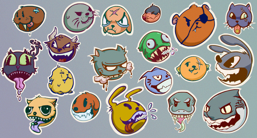 The aim was to make some kind of animal "vicious" (in a certain fashion) But cute faces. Some look like dogs other I had a certain animal in mind... other look like hybrids. Also the style foresaw was a little like oldschool and very cartoony. A mix between cuphead and tiny toons.