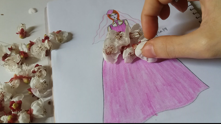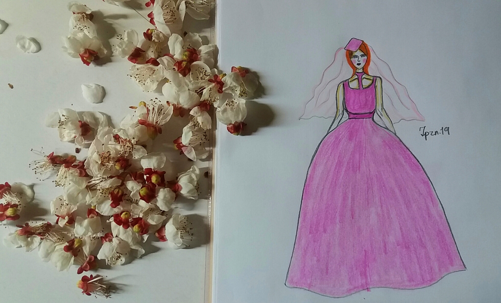 I have my painting with another design in her clothes.. this time with Blossoms.. 🌸