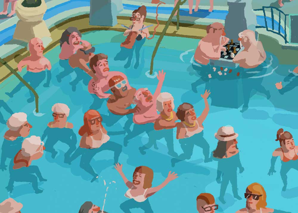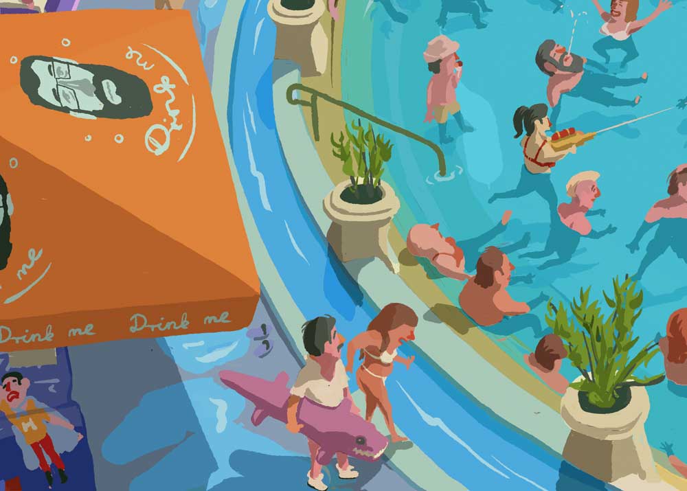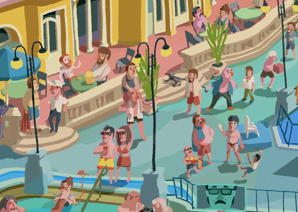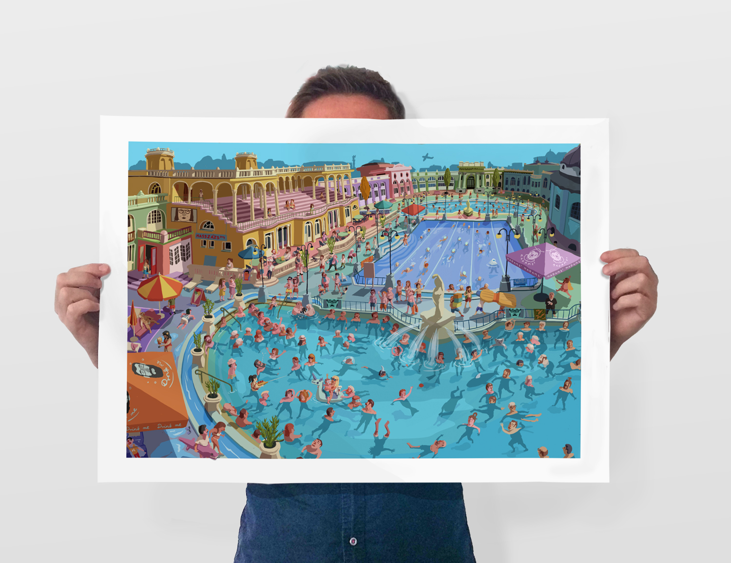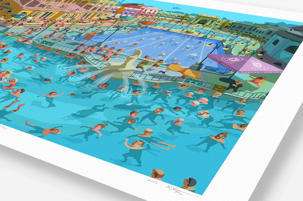 My illustration about Szechenyi Thermal Spa with bear, shark, mermaid and Hitchcock... :)