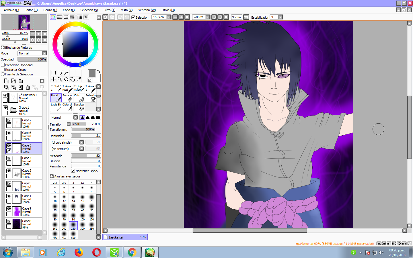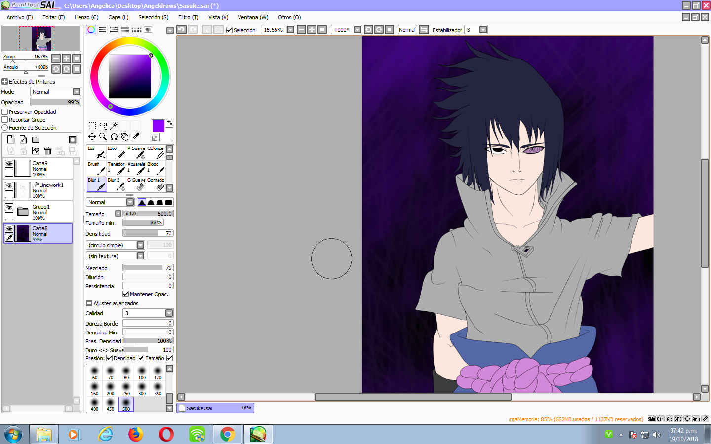 Sasuke siempre ha sido mi personaje favorito en el mundo del anime, teniendo la oportunidad de dibujar en Sai no pude controlar las ganas de dibujarlo, siempre que tengo la oportunidad de dibujarlo lo hago...