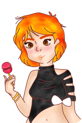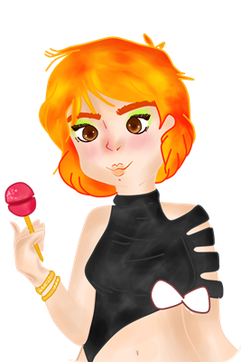 I will continue to color the part of her outfit, I have decided to use black color together with a combination of gray to contrast with her hair and make it stand out more. The hair has been the part that I liked the most, I have used various colors, including yellow, red and orange.