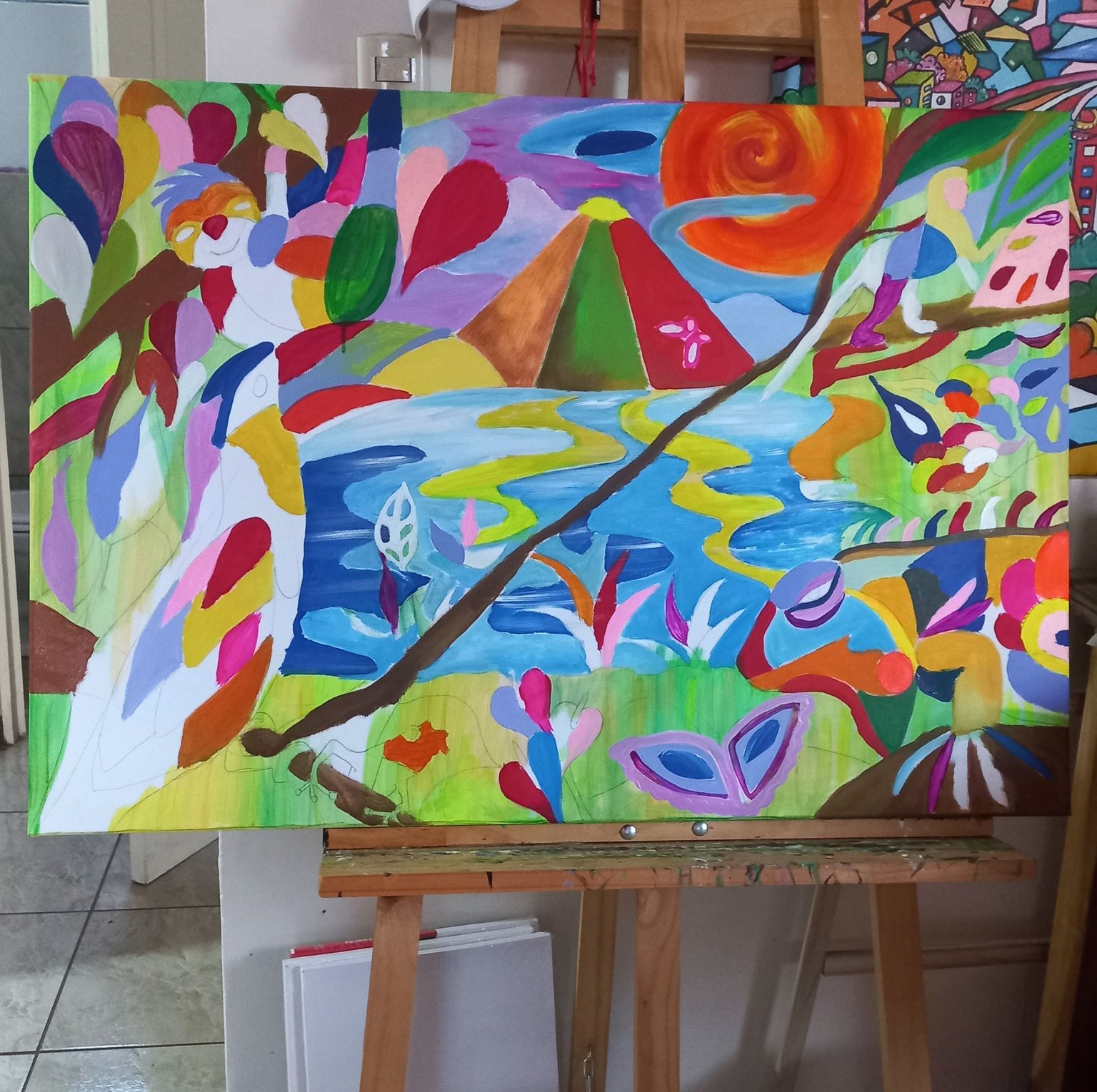 This piece is a ritual. Painting it felt like dancing with the jungle, like speaking with its spirits. And although it looks joyful, it’s also a cry: nature is not decoration—it is sacred.