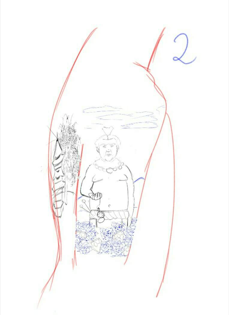 El tatuaje se estructuraba en dos partes, uno para la parte de la espalda y otro en la parte del brazo.