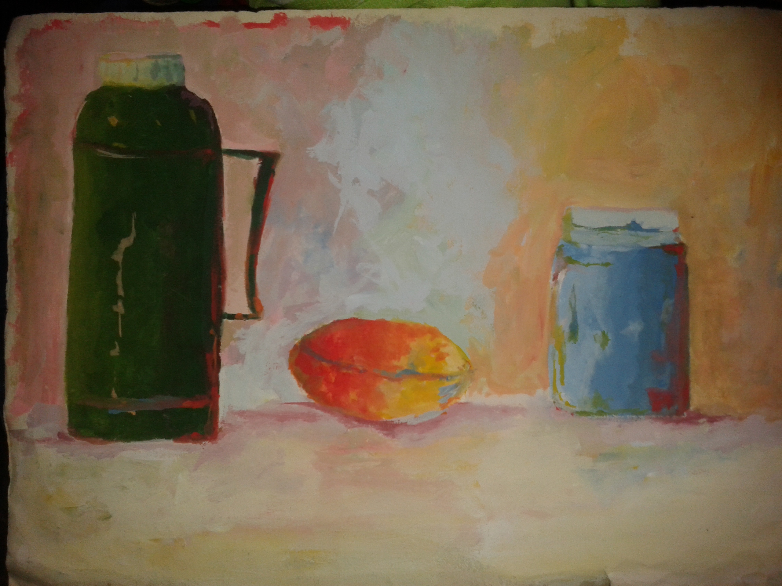 Hey! amigos de steemit, en mi primera publicación quiero mostrarles un apunte de pintura con objetos tan simples y cotidianos que pueden estar presentar en nuestro hogar. A su vez manejando una especie de colores puros o vivos reflejando esa ingenuidad de las cosas comunes; creando una atmósfera cálida a pesar de la presencia de colores fríos.