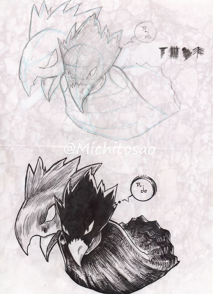 Les presento un fanart del personaje #Fumikage , de la serie japonesa #BokunoHeroacademia. #Fumikage tiene cabeza en forma de pájaro, Su traje de héroe es un manto oscuro deteriorado en los bordes inferiores que cubre todo su cuerpo desde el cuello hacia abajo. Su #Quirk es Dark Shadow.