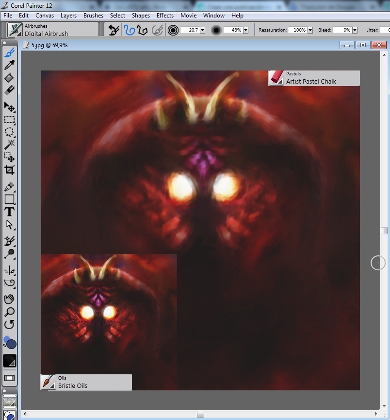 There are four brushes I use in this painting, pastel chalk, oils, diffuser and texture.