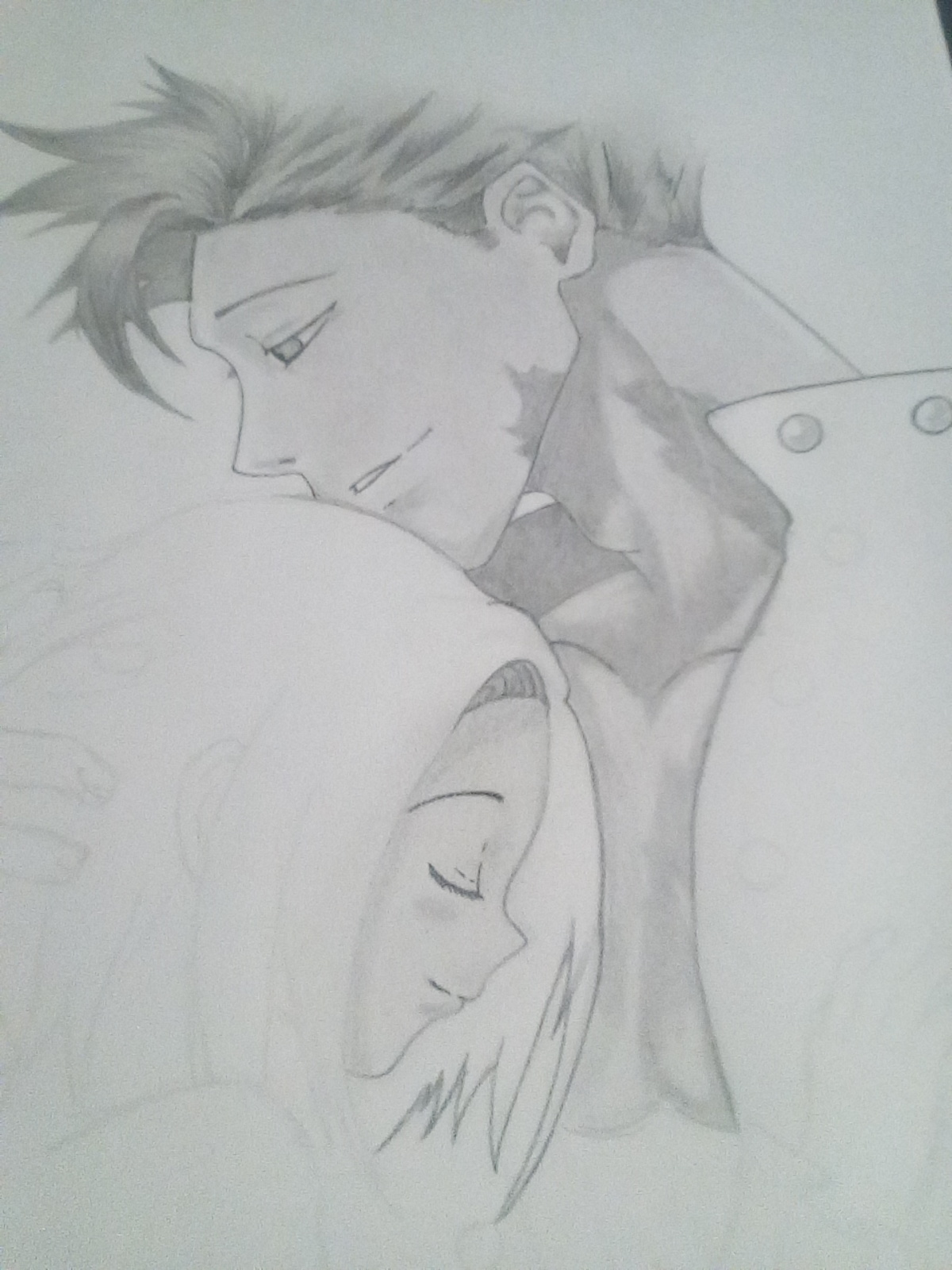 Hola amigos de steem Tratare de hacer publicaciones para dar a conocer mi trabajo y llegue a más publico, espero les sea de su agrado a todos. Les traigo un dibujo de ban y elaine del anime Nanatsu no Taizai que espero a que la mayoría les llegue a gustar, creo haber avanzado un poco más con los efectos de los blanco y negro. A mí lo que me sigue pareciendo difícil de pintar son los labios ya que todavía no he descubierto la forma de como colocárselos. En fin, nuevamente espero que les guste mi nueva dibujo y disfruten del proceso mil gracias si les gusto no olviden dar un voto que eso me motiva a subir mas contenido e ir mejorando cada dia mil gracias amigos de steem