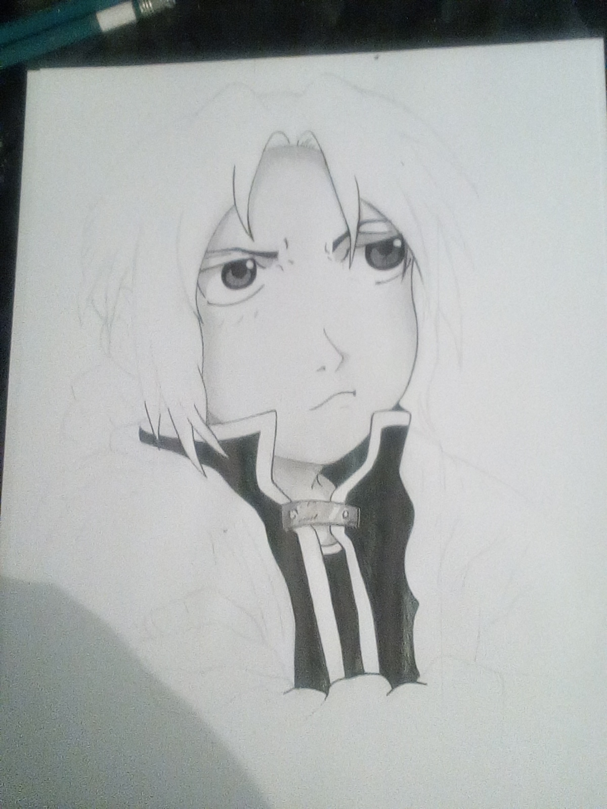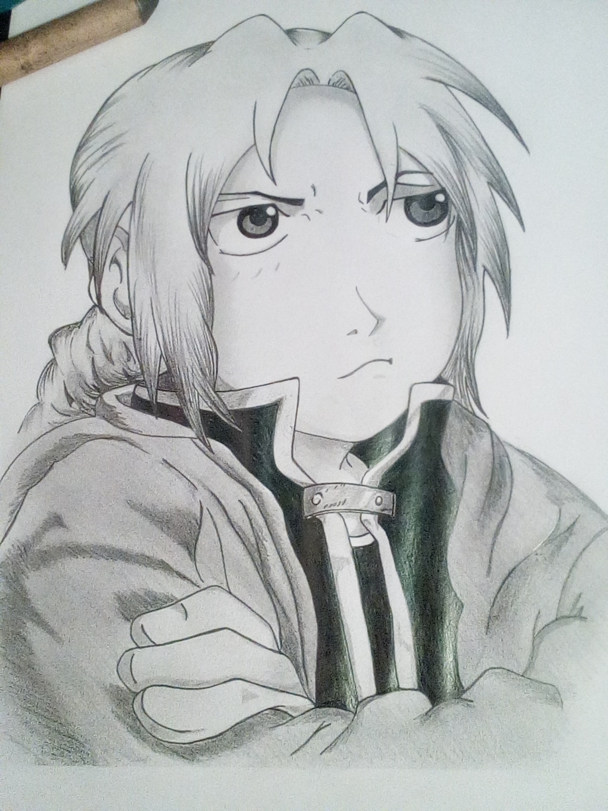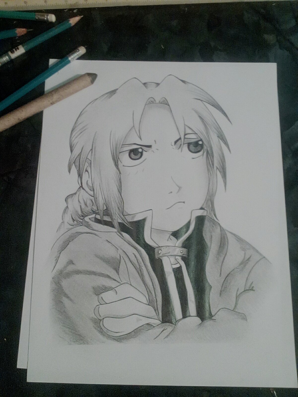 Hola amigos de steem Tratare de hacer publicaciones para dar a conocer mi trabajo y llegar a más público, espero les sea de su agrado a todos. Les traigo un dibujo de edward del anime fullmetal alchemist que espero a la mayoría les llegue a gustar, creo haber avanzado un poco más con los efectos de los blancos y negro. A mí lo que me sigue sigue pareciendo difícil de pintar hijo los labios ya que todavía no descubrió la forma de como colocárselos. En fin, nuevamente espero que les guste mi nuevo dibujo y disfruten del proceso mil gracias si les gusta no olviden dar un voto que eso me motiva a subir más contenido e ir mejorando cada día mil gracias amigos de steem