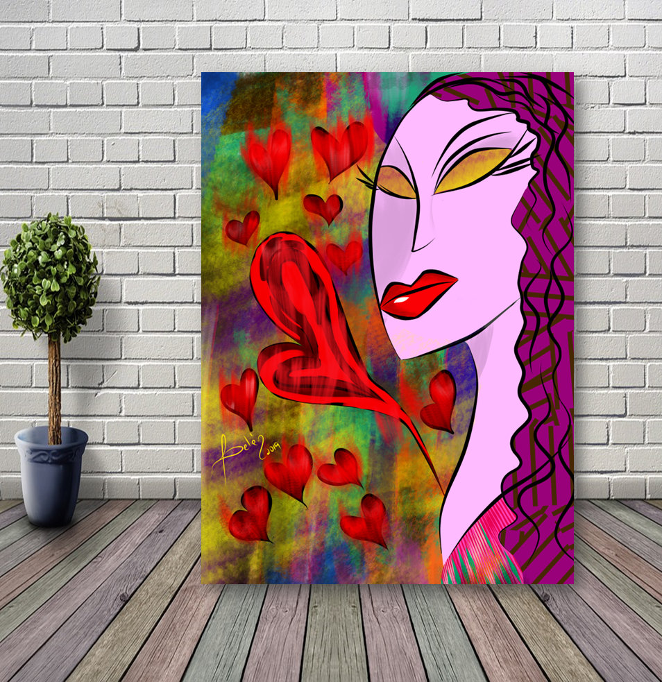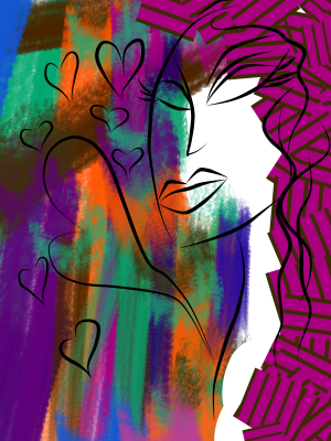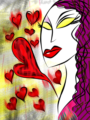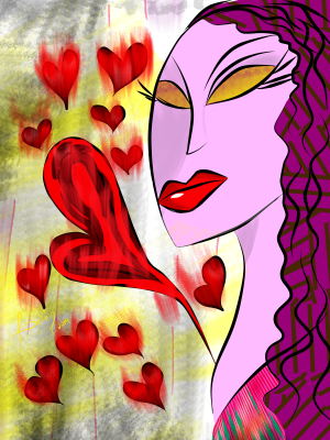 El turno ahora es de los corazones, solo doy pinceladas con la herramienta pintura al oleo seco en varias tonalidades de rojo y un toquecito de blanco. Coloco otra capa, y con el pincel Línea intensiva 2 diseño la camisa de la muñeca.