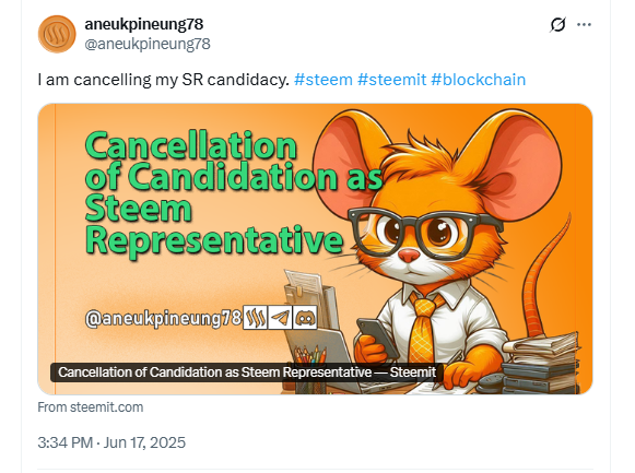 Cancellation of Candidation as Steem Representative
