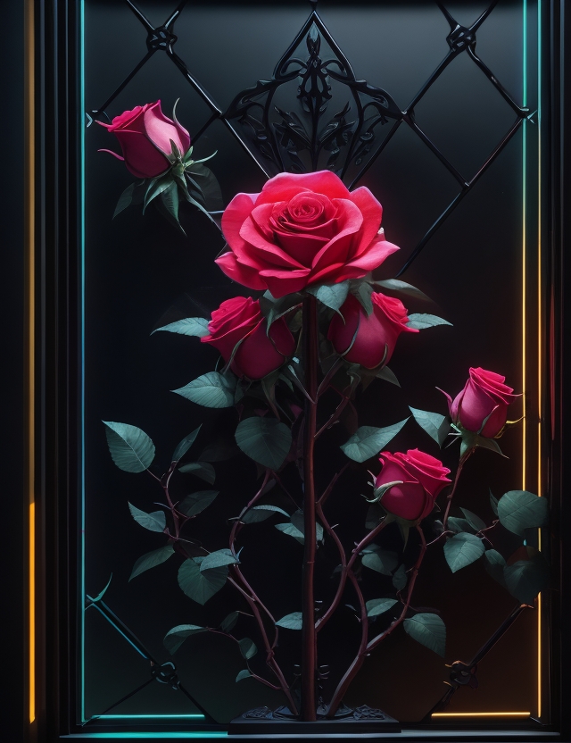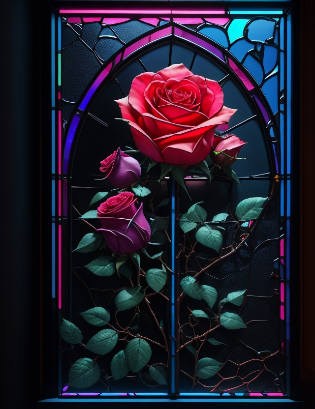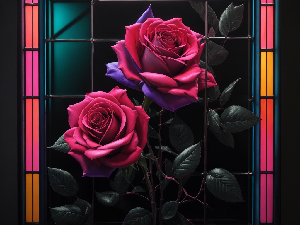 Rosas en la ventanaartelita (46)in #artelita • 3 years ago Fotografía intervenida con iluminación neón - Photography intervened with neon lighting #design #spanish #art #photo