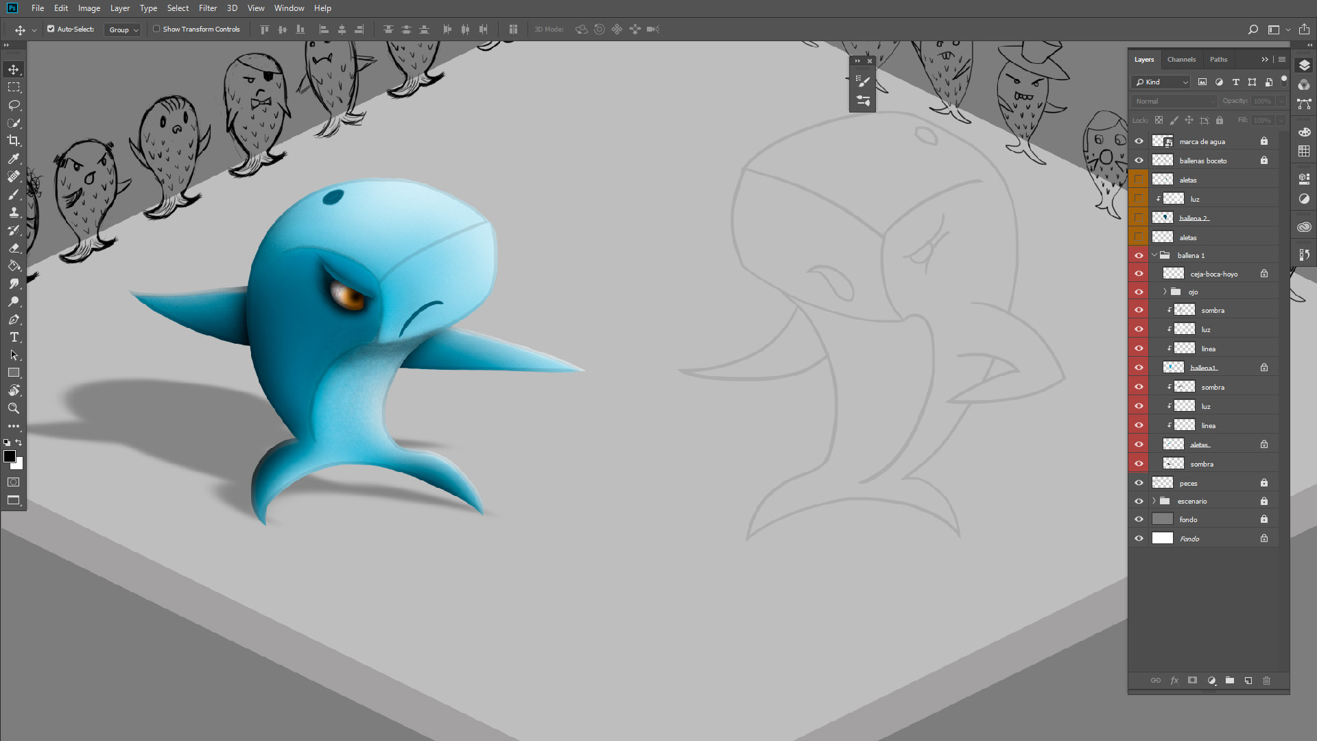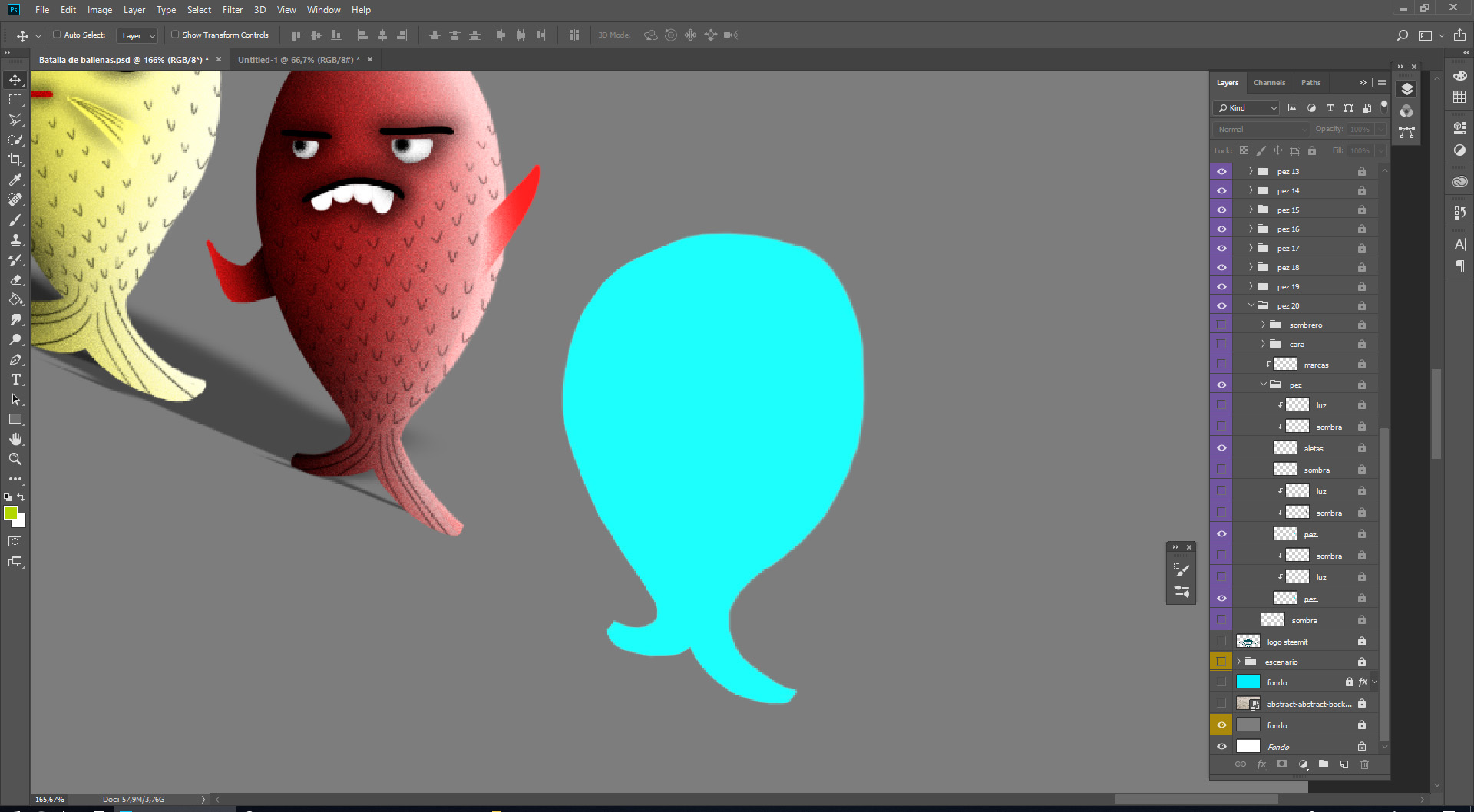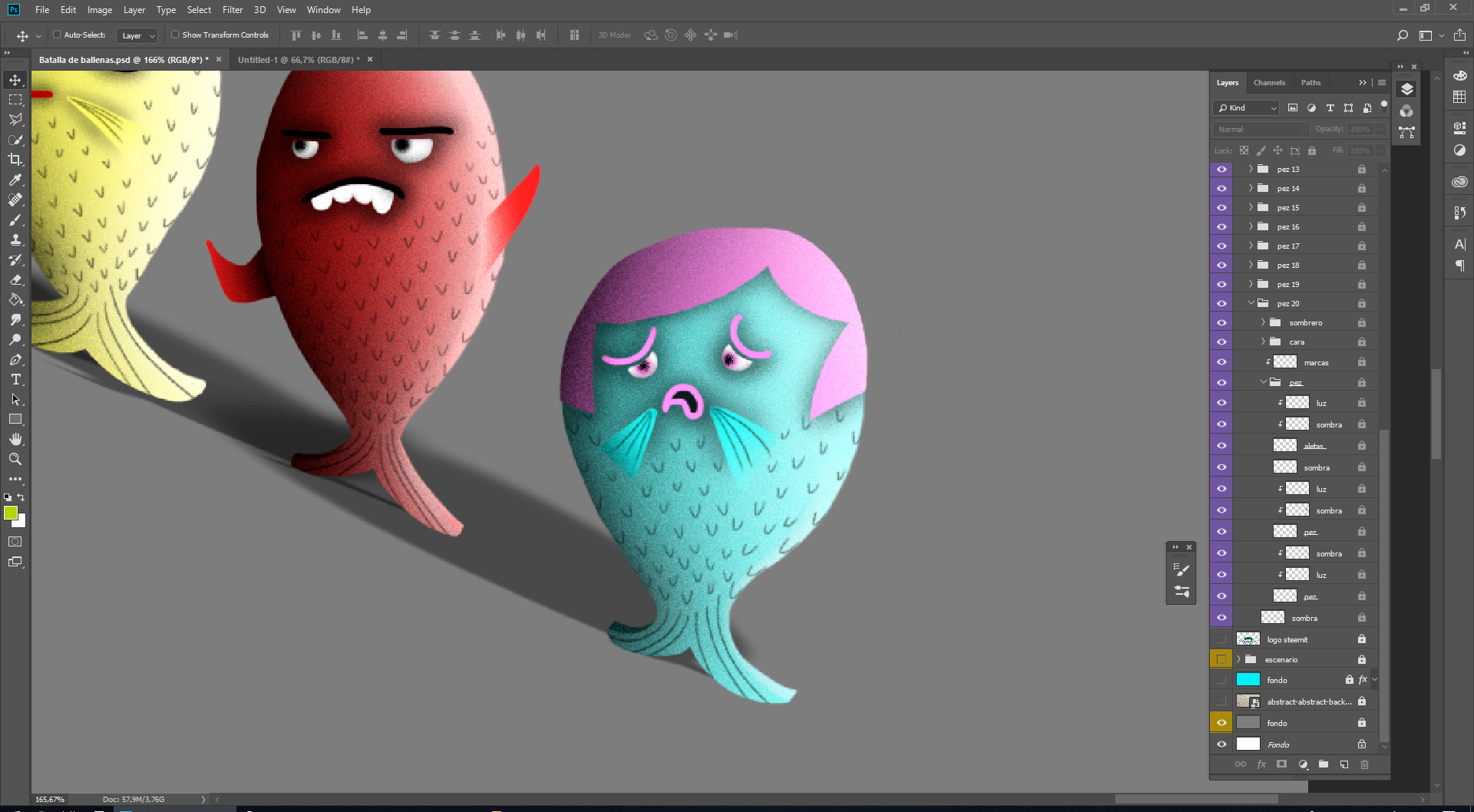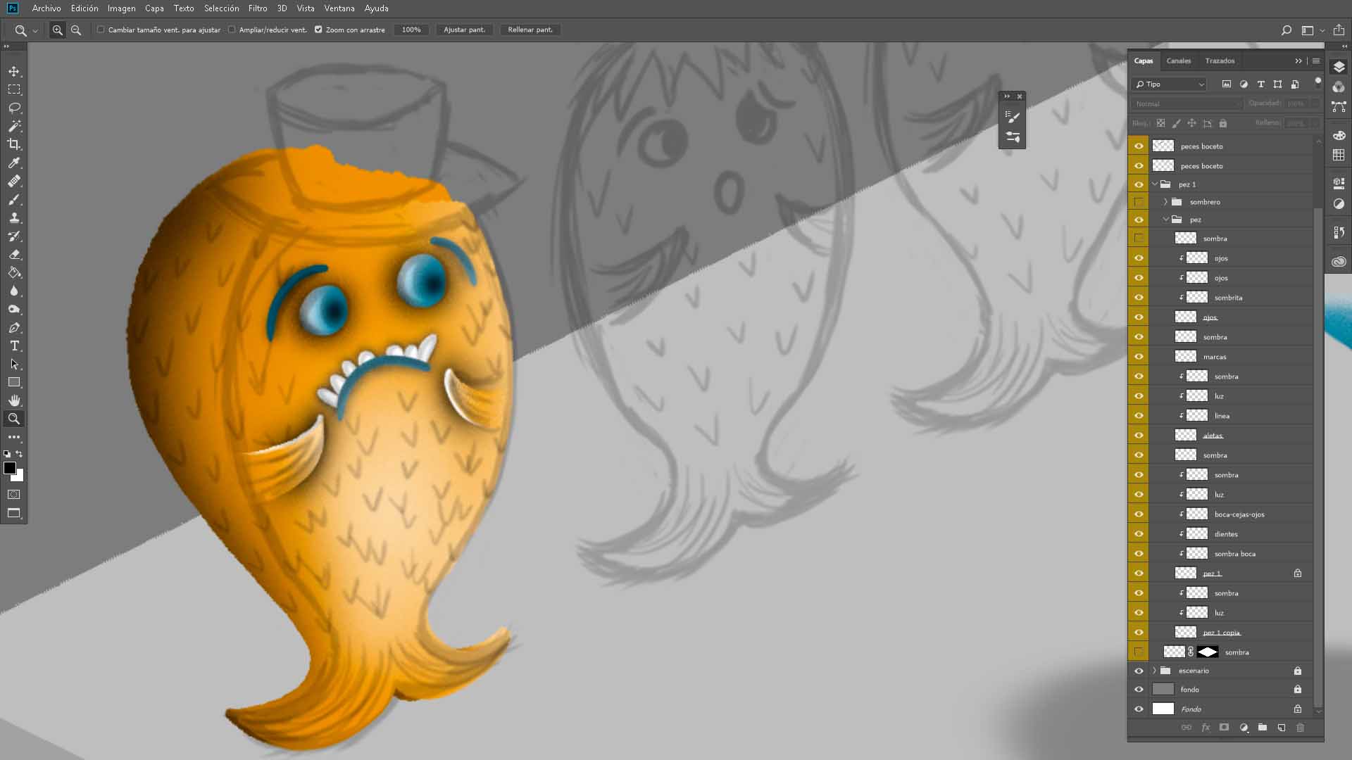 Note: to advance the process I skipped many important captures as: the details of bubbles and the construction of the majority of characters.