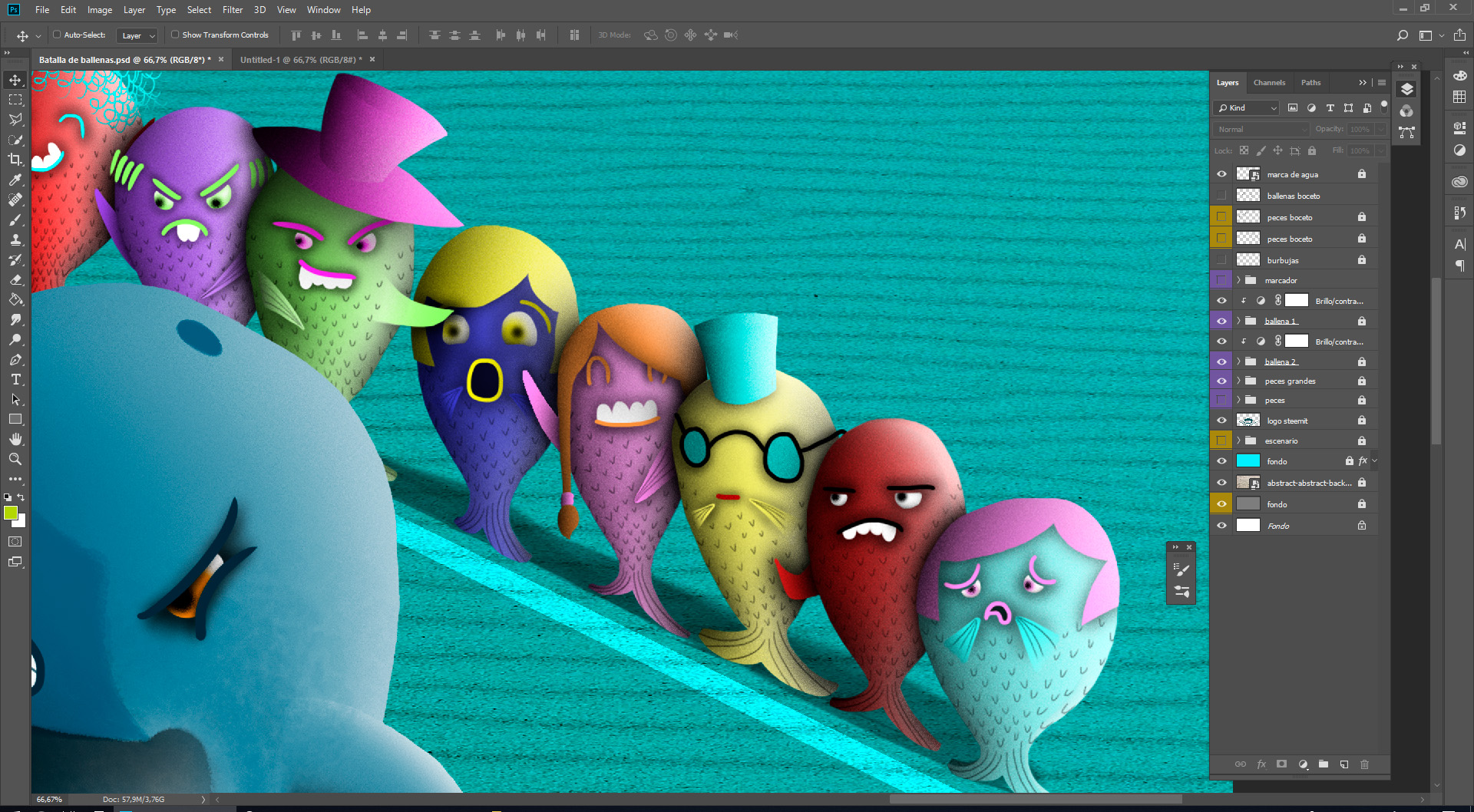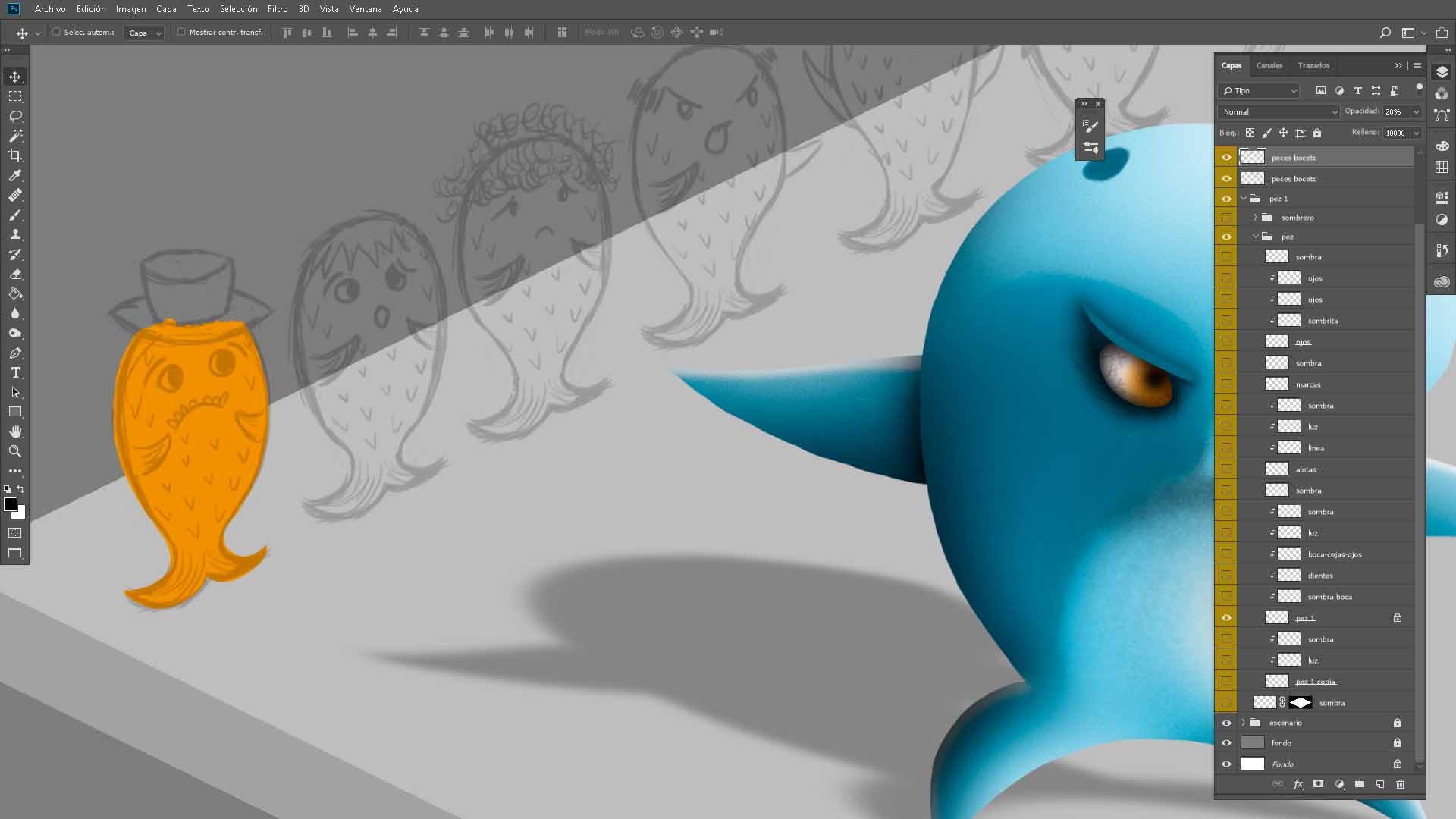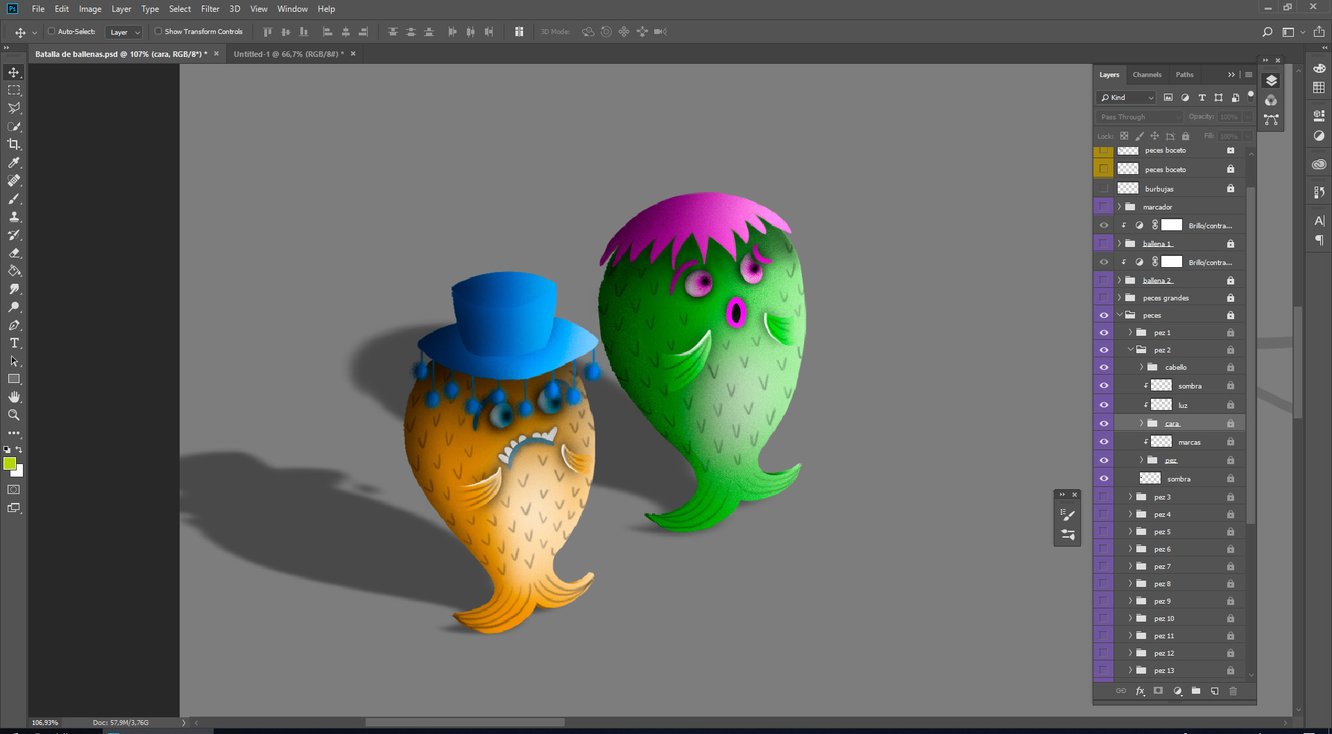 Note: to advance the process I skipped many important captures as: the details of bubbles and the construction of the majority of characters.