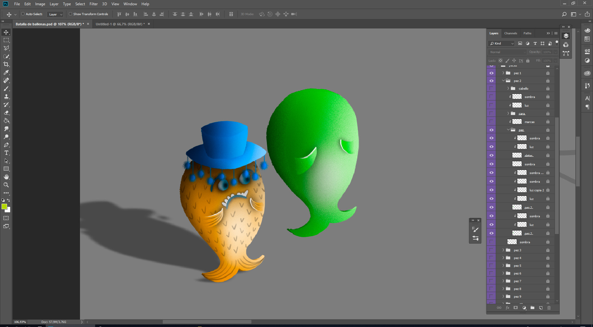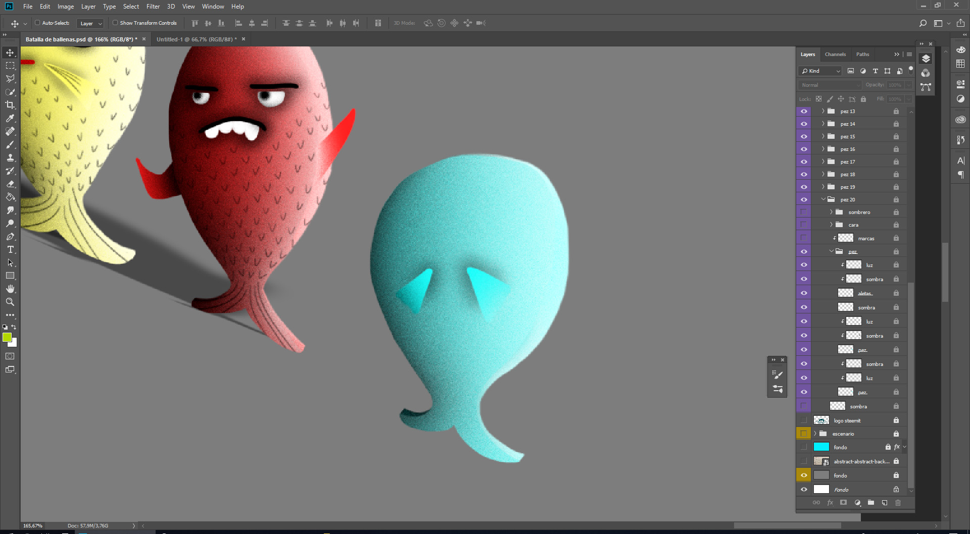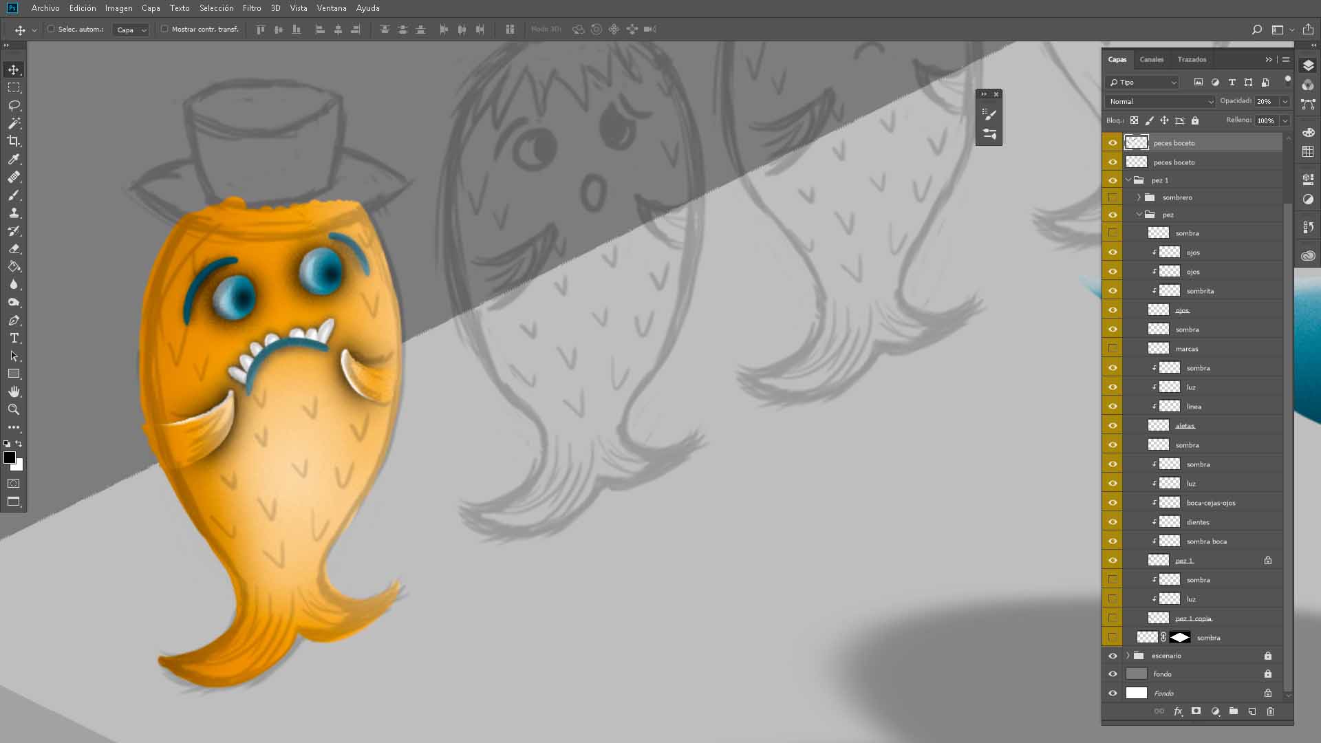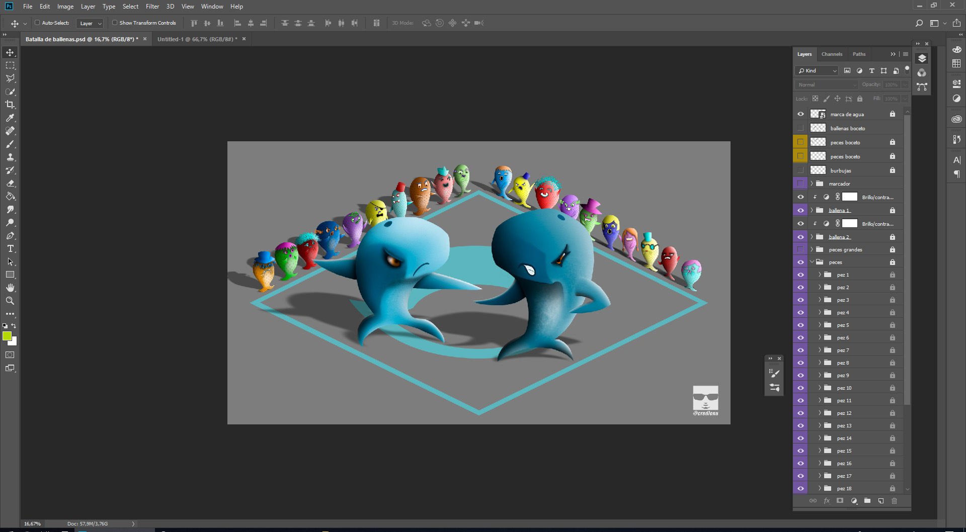Note: to advance the process I skipped many important captures as: the details of bubbles and the construction of the majority of characters.