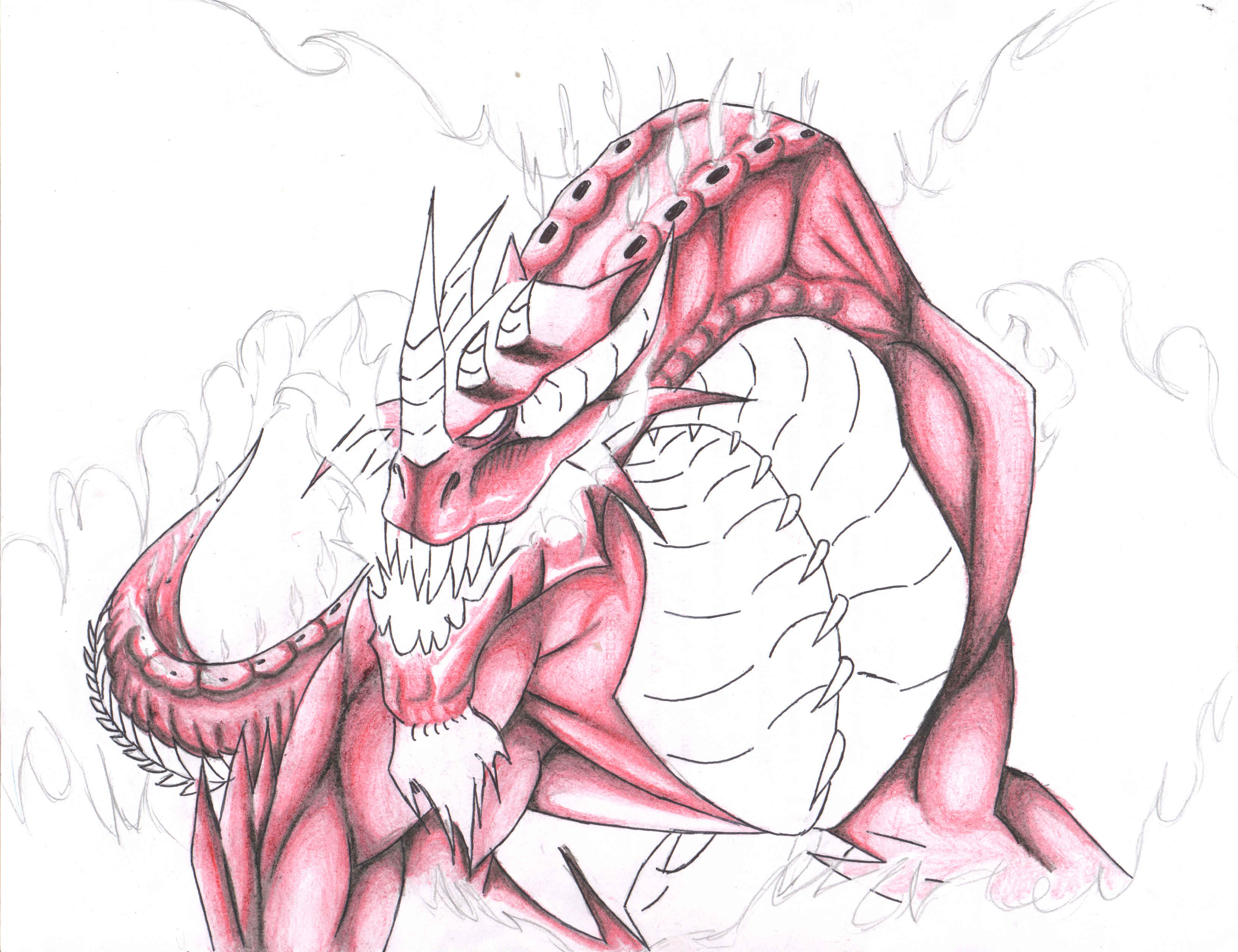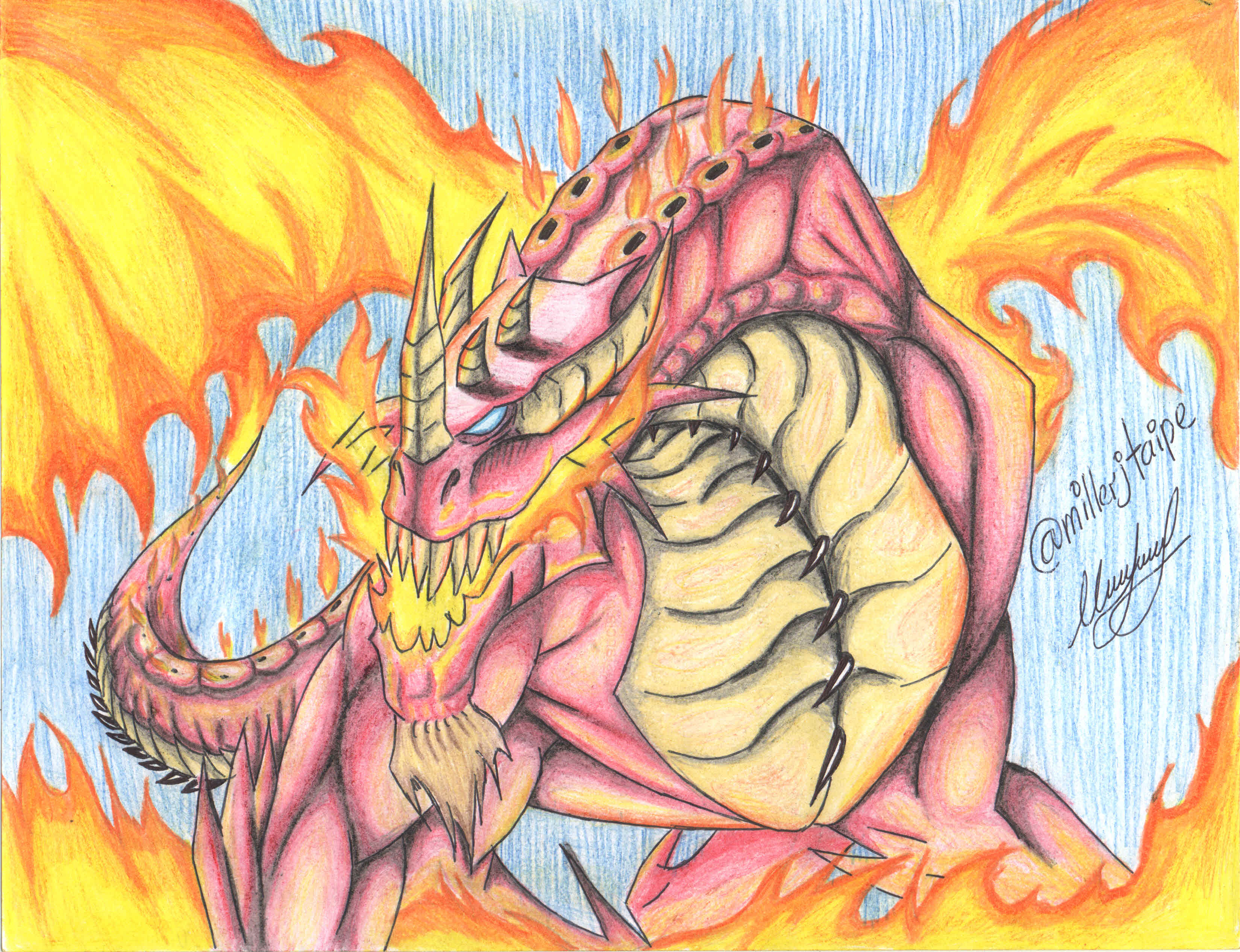I chose to illustrate a dragon, this composition consists of a red dragon without its own wings but this one not only throws fire from its mouth but is able to manipulate it at will and from here its wings of fire with which it can fly to his whim even at a speed that no other dragon could.