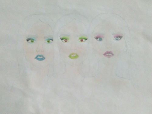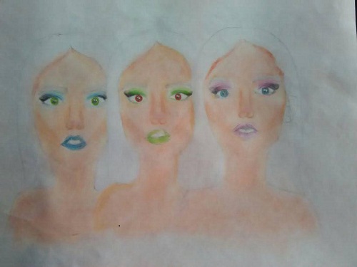 First I drew the sketch and painted the eyes and mouth of each one.