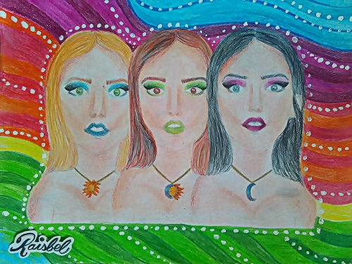 The girl from the center represents the eclipse, she is a person of different personality, she is friendly but her change of mood is usually drastic.