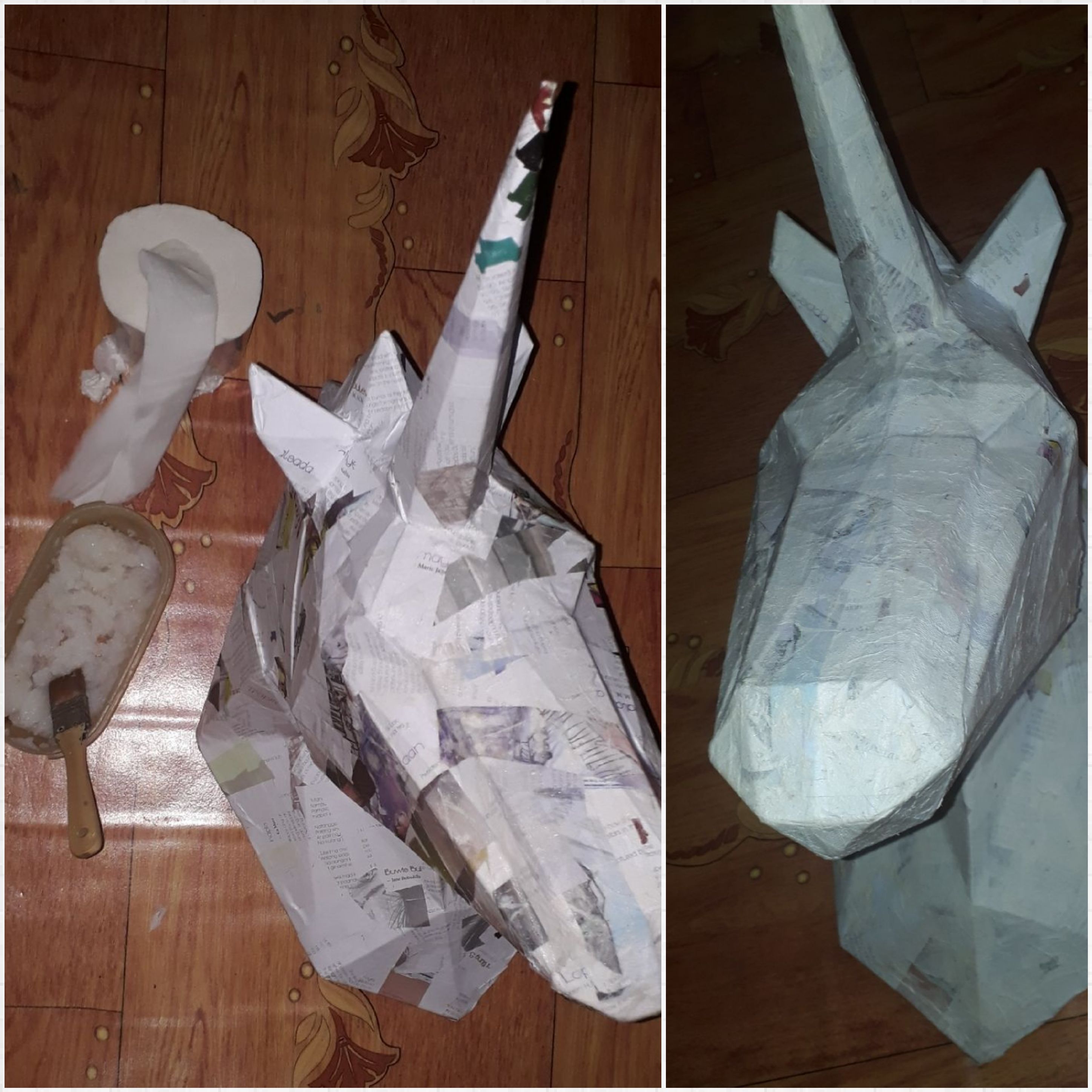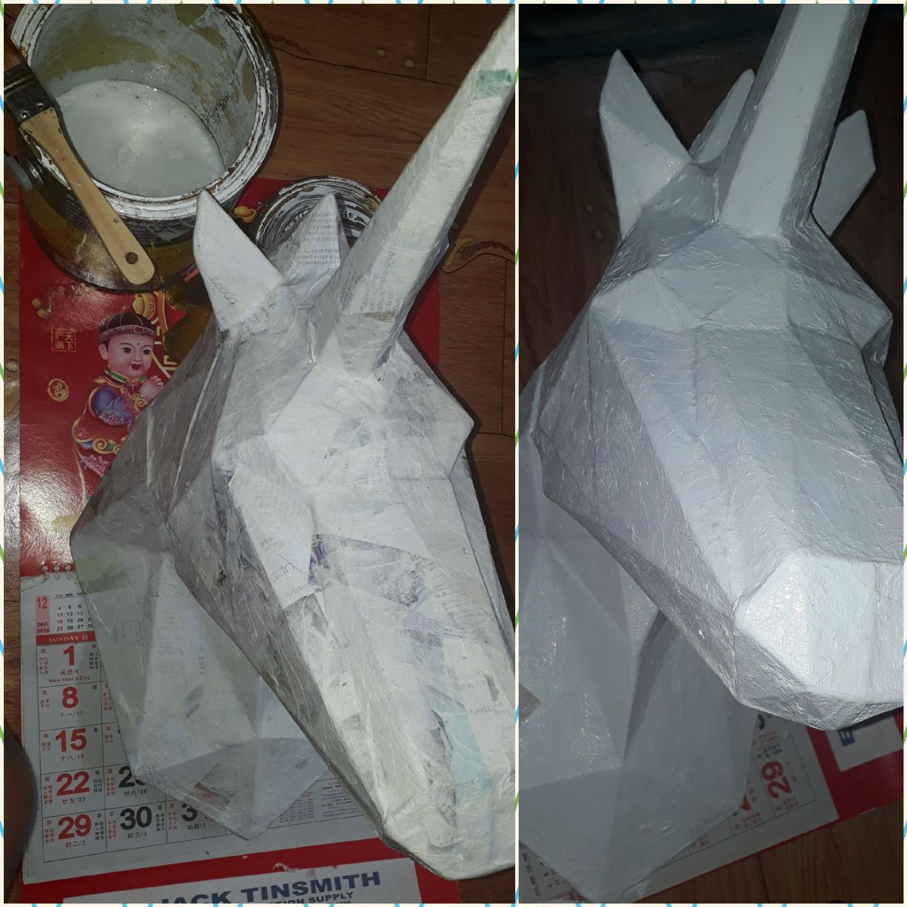Before and after I painted it with white acrylic. I used white acrylic to primer or as base color of the unicorn.