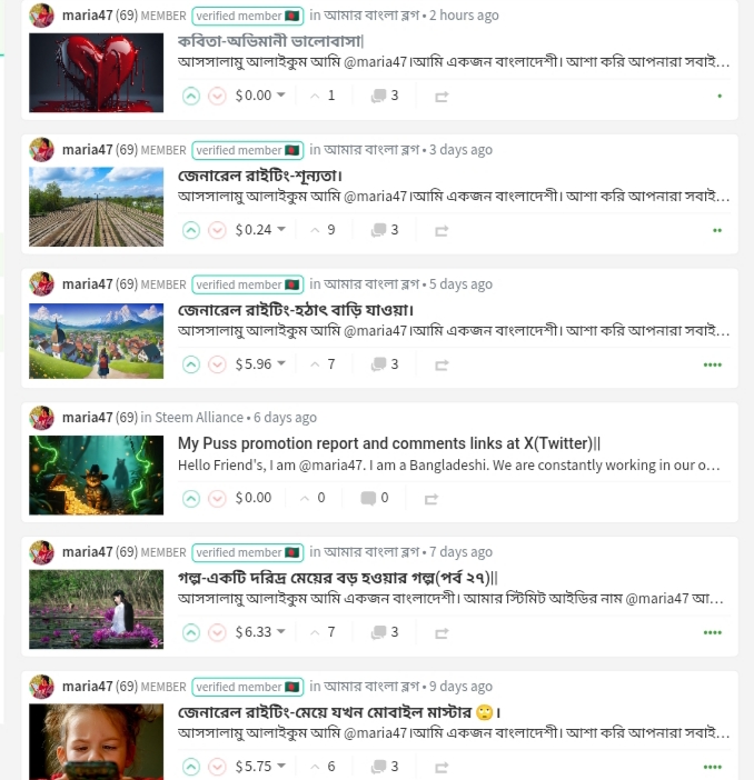 "আমার বাংলা ব্লগ" আজকের ফিচারড আর্টিকেল রাইটার - @maria47