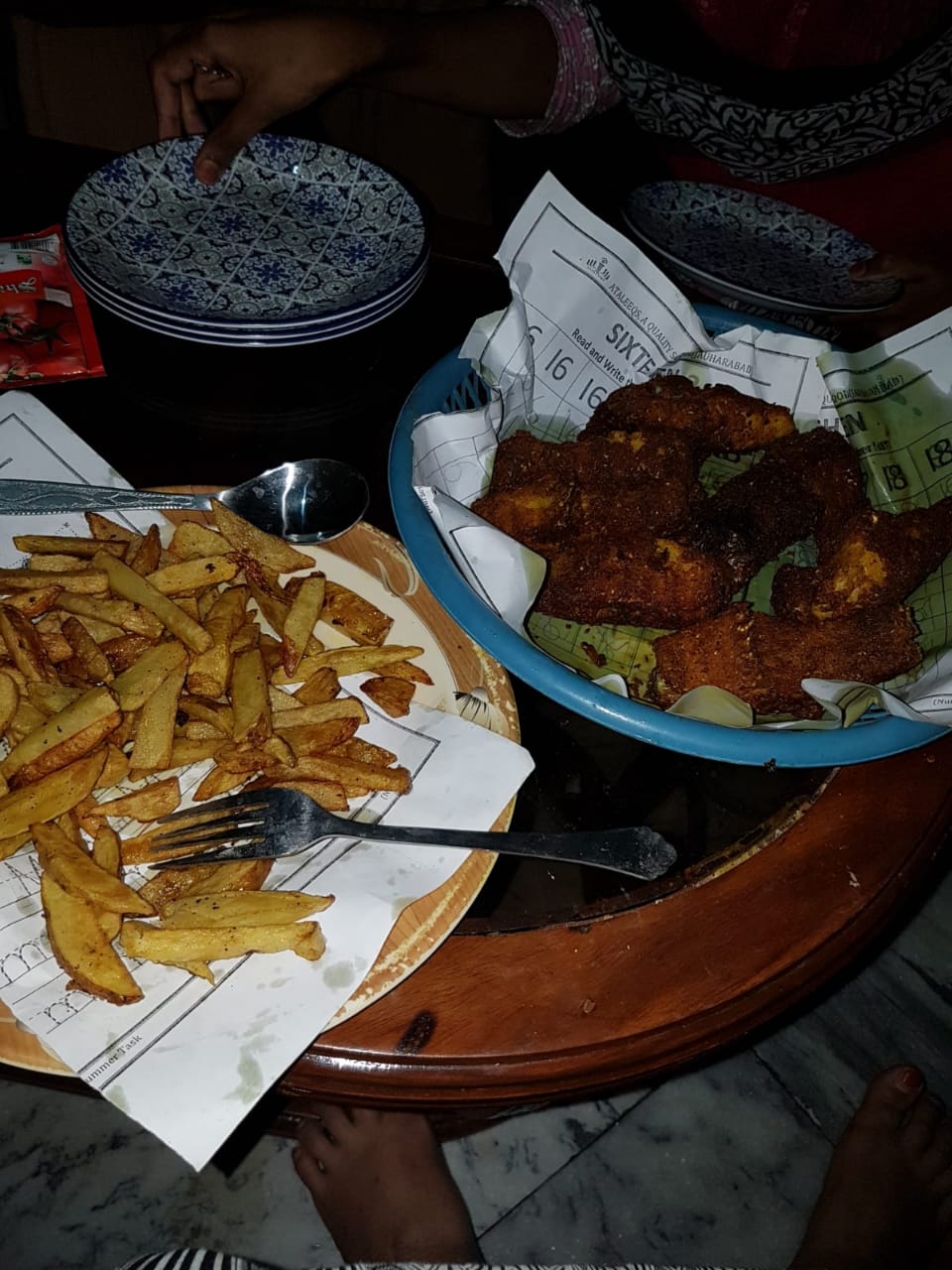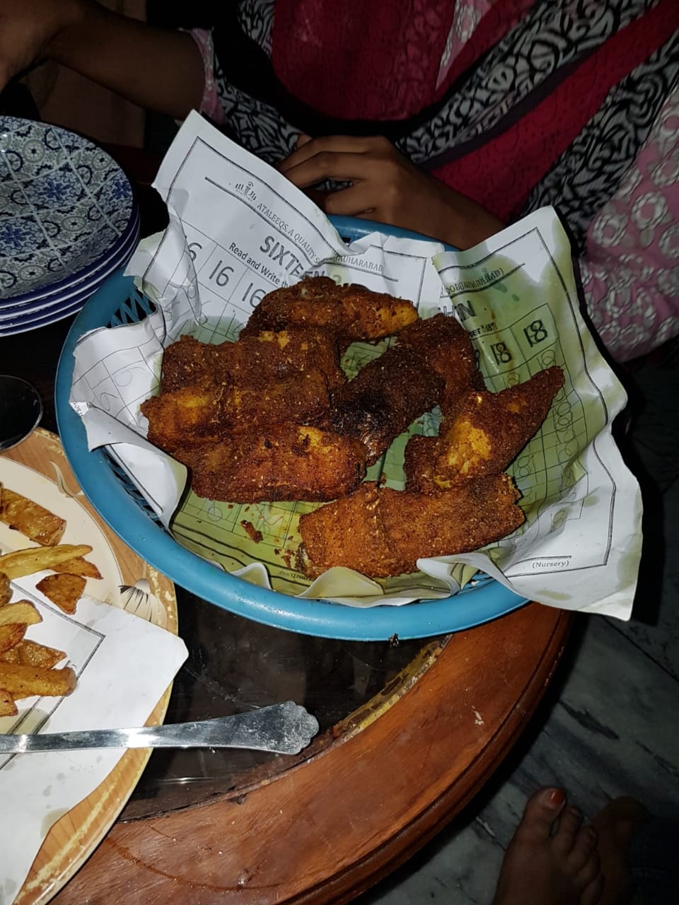 today i was so tired as i mention in my previous i am much tired because of so much travelling to many cities . today i dont want to make any thing to eat so that at noon i gave the order of chicekn rice and chicken white handi. and after eating i take some rest . and now i gave the order of fry fish and some chips. the dinner was much spicy . i eat it very much now i need to walk.