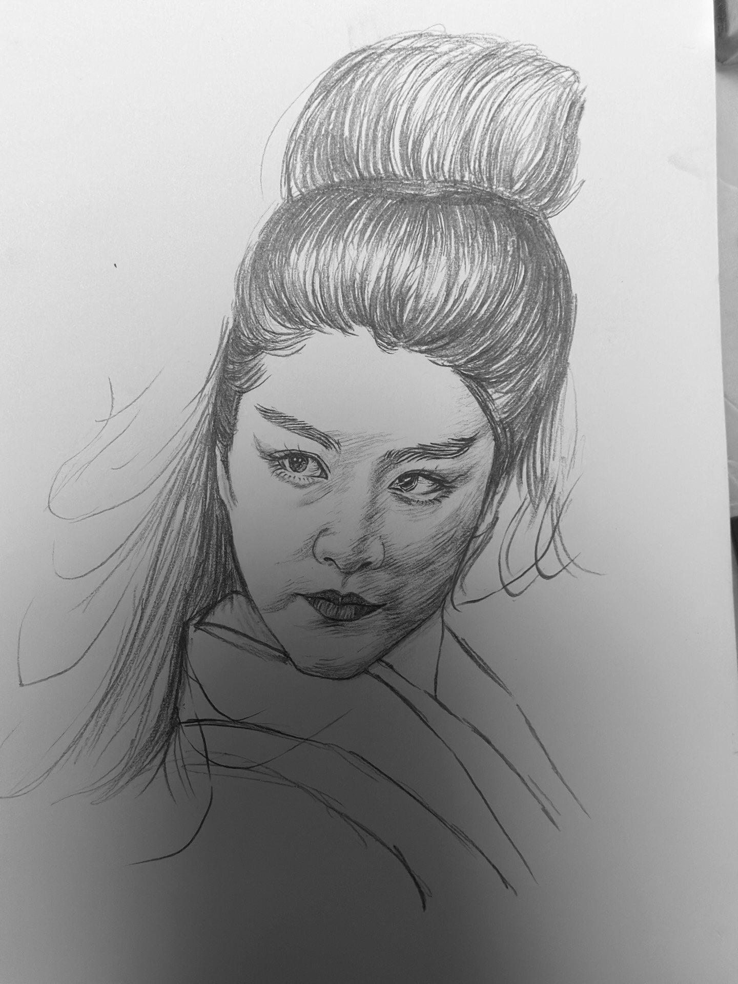 像画这幅画的女孩也是和我一样,都是喜欢素描,我从未看到她用彩色原料。她平时也是用铅笔和画本。她画画真的很有技巧。但我不知道她是怎样做到的。