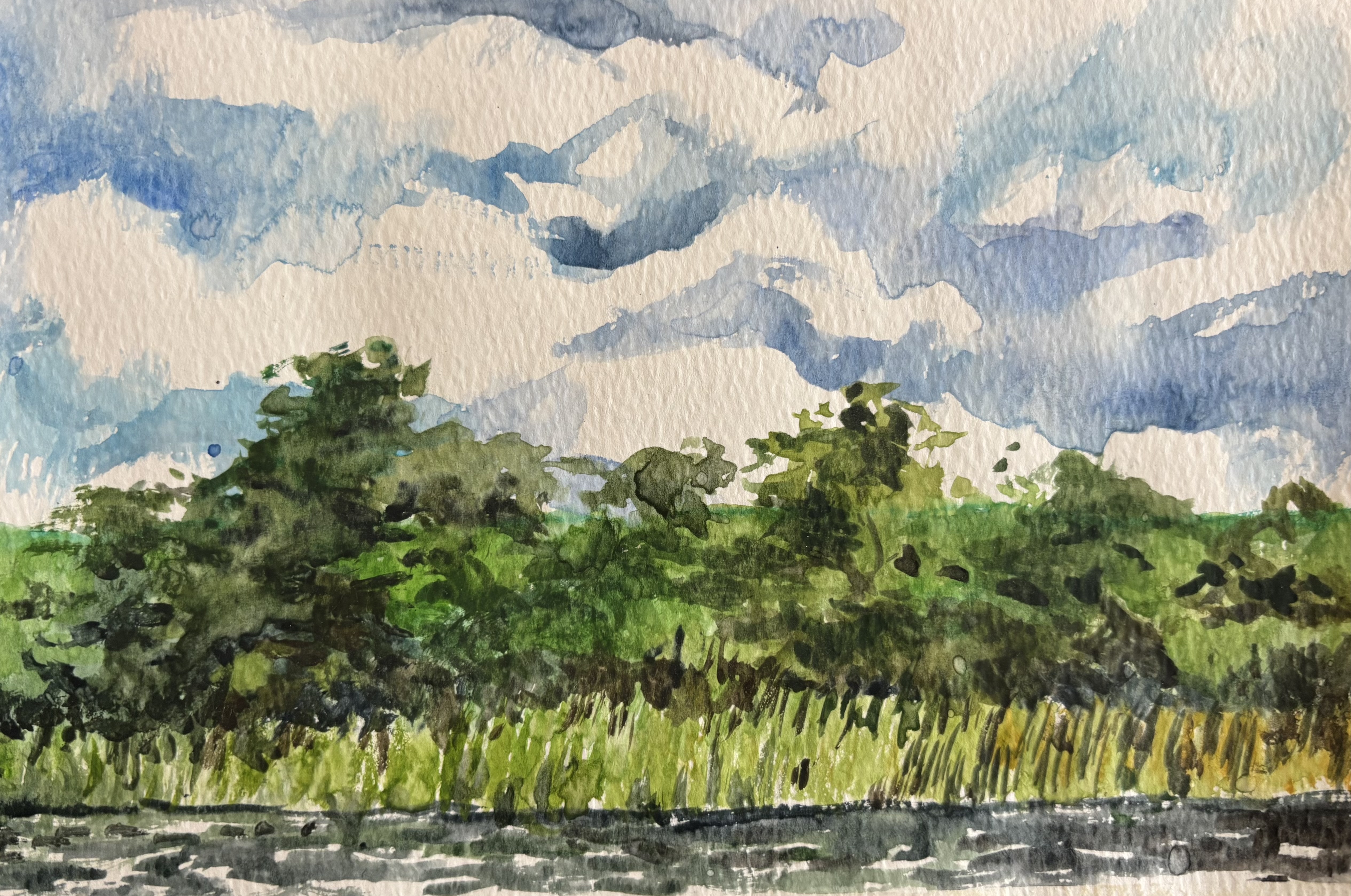My watercolours are usually 5 x 7 or 8 x 10 … whatever can be painted quickly from the kayak or canoe while trying to avoid being eaten alive by mosquitoes, black flies and deer flies