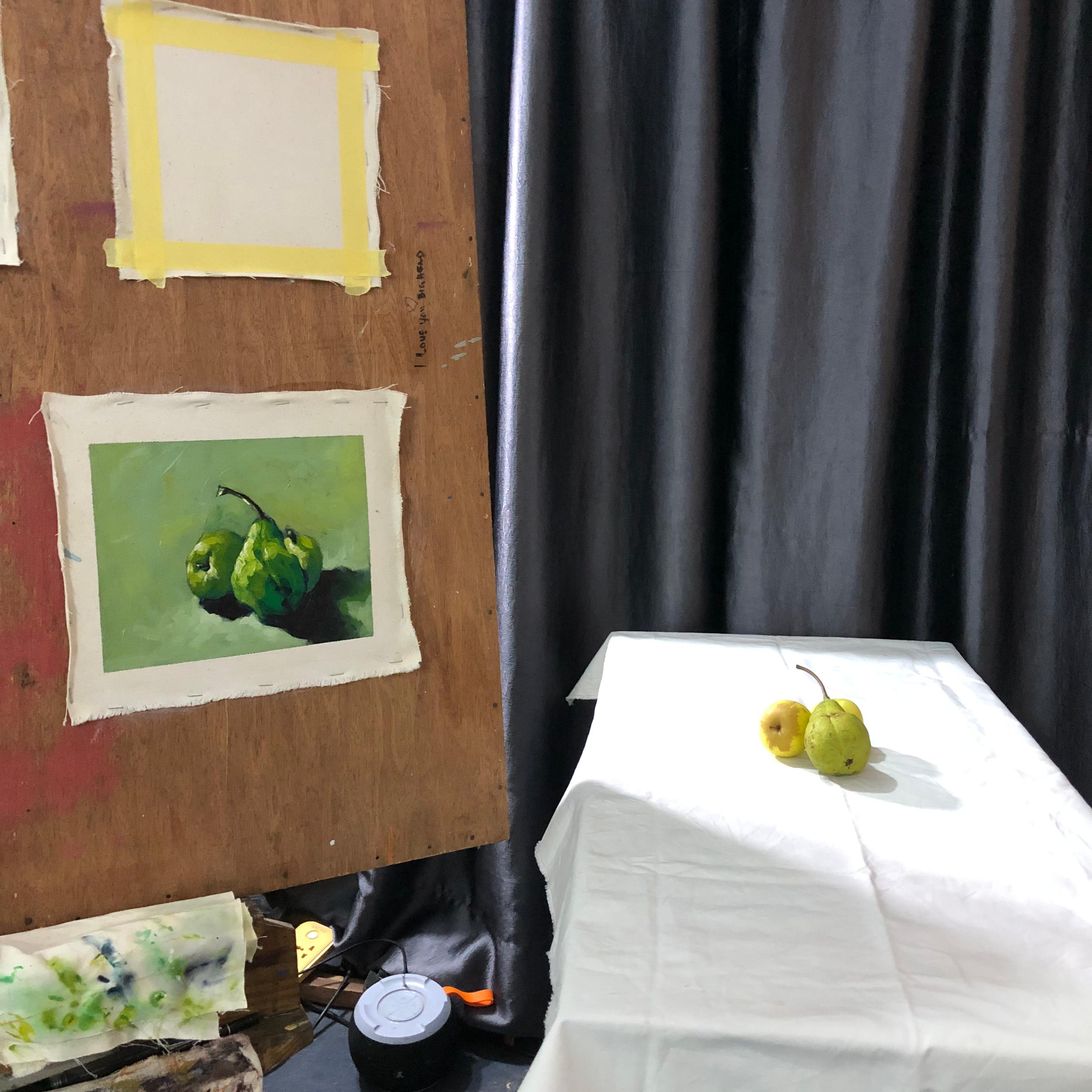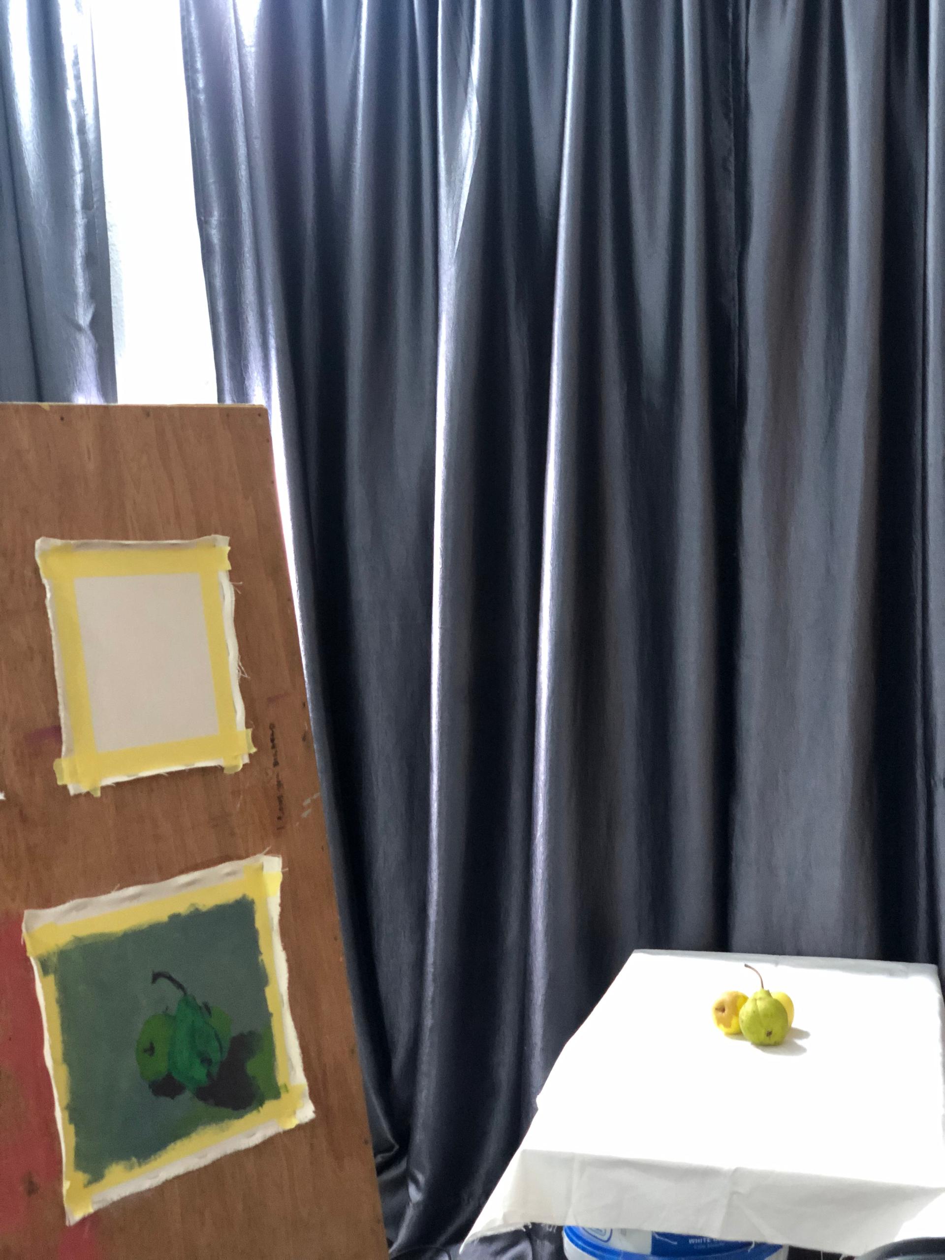As you can see in the image above, aside from the preparations of my canvas, the arrangement of the fruit is another important thing, I had to make sure the arrangements is not boring and at the same time it doesn't takes away the true identity of the subject I am trying to study.