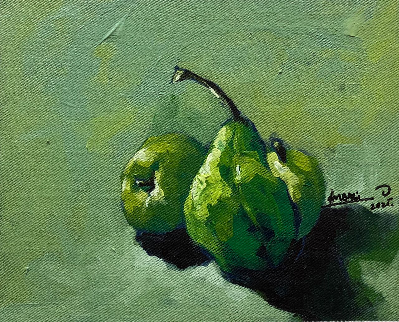 Firstly, I would love to say that I really enjoyed this particular artistic study. I got two piece of Apples and a Guava fruit and I thought to study the shapes and the colourful relationship from green to lemon and yellow pallete on the fruit.