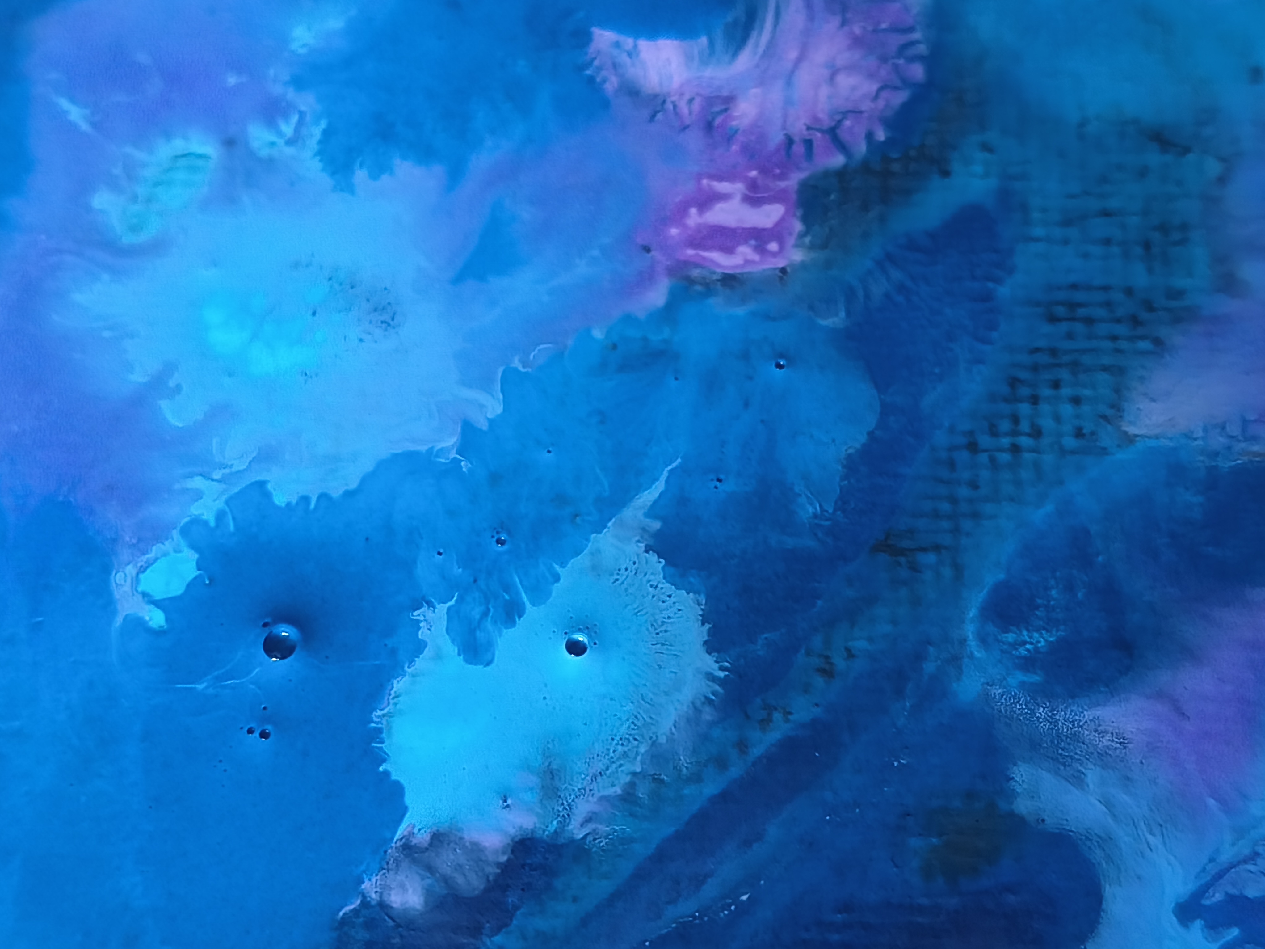 Yes, if it comes to it, I am a perfectionist, and when I was taking photos in between, I saw the canvas shining through. I don't think it looks very nice. Indeed, art is viewed from a distance, but I'm not average, and when I have the chance, I do stand right up close to examine every detail, every dot, every bubble.