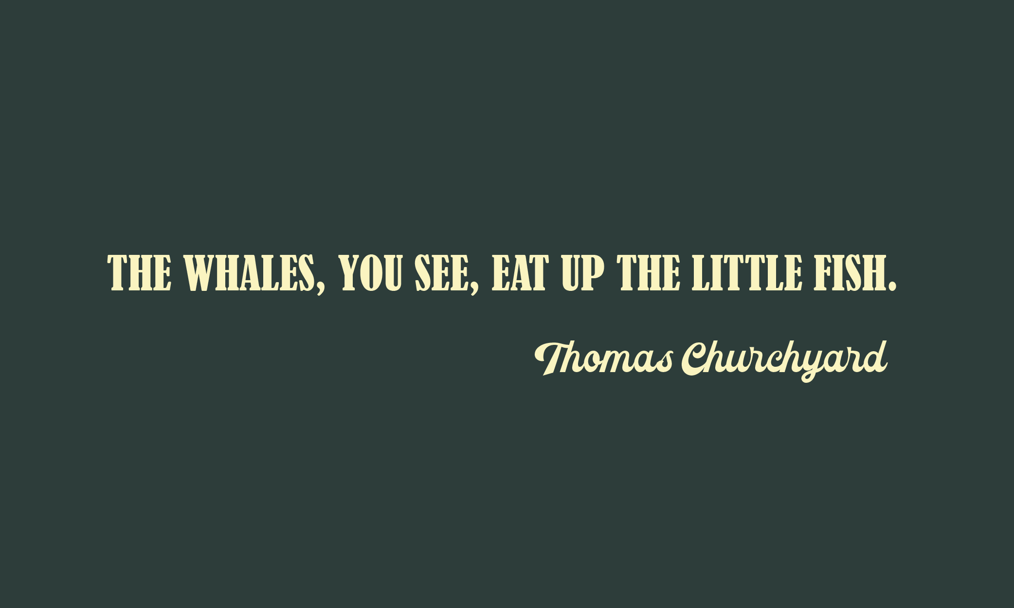 Описание: Нужно изобразить цитату "The whales, you see, eat up the little fish" Thomas Churchyard любым творческим способом